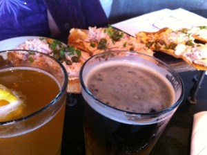 We each started off with a beer. Our waitress, Kelly, informed us that this is much more of a wine place, but we are beer people. I had an Irish Numbers (the house “black and tan” made with Guinness and their own ale), which was quite refreshing on a hot day. Eve ordered a Terrapin Sunray Wheat, but they were out of it, so she settled for a Blue Moon instead.