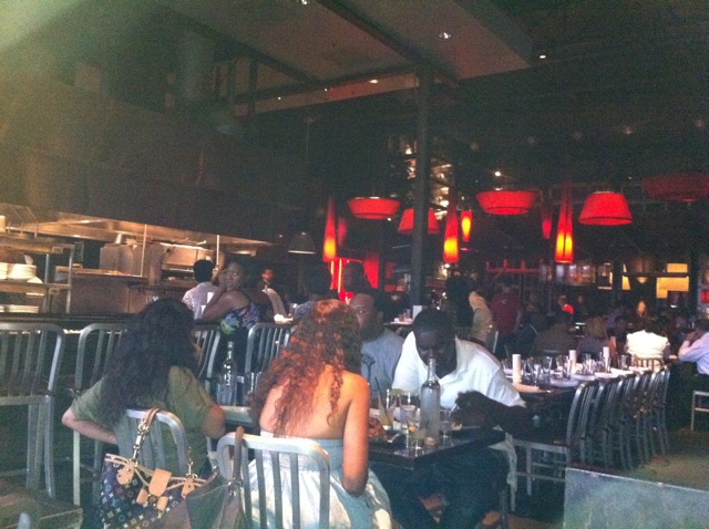 The dining space is as big as a warehouse, probably because the place used to be a warehouse. The owners did a great job remodeling the building. The centerpiece of the whole place is the kitchen, which is smack dab in the middle of things and features a huge wood-fired grill where they grill steaks, burgers and pork chops. This makes the restaurant a bit smoky, but it’s that nice campfire smell, not the noxious fumes of cigarettes.