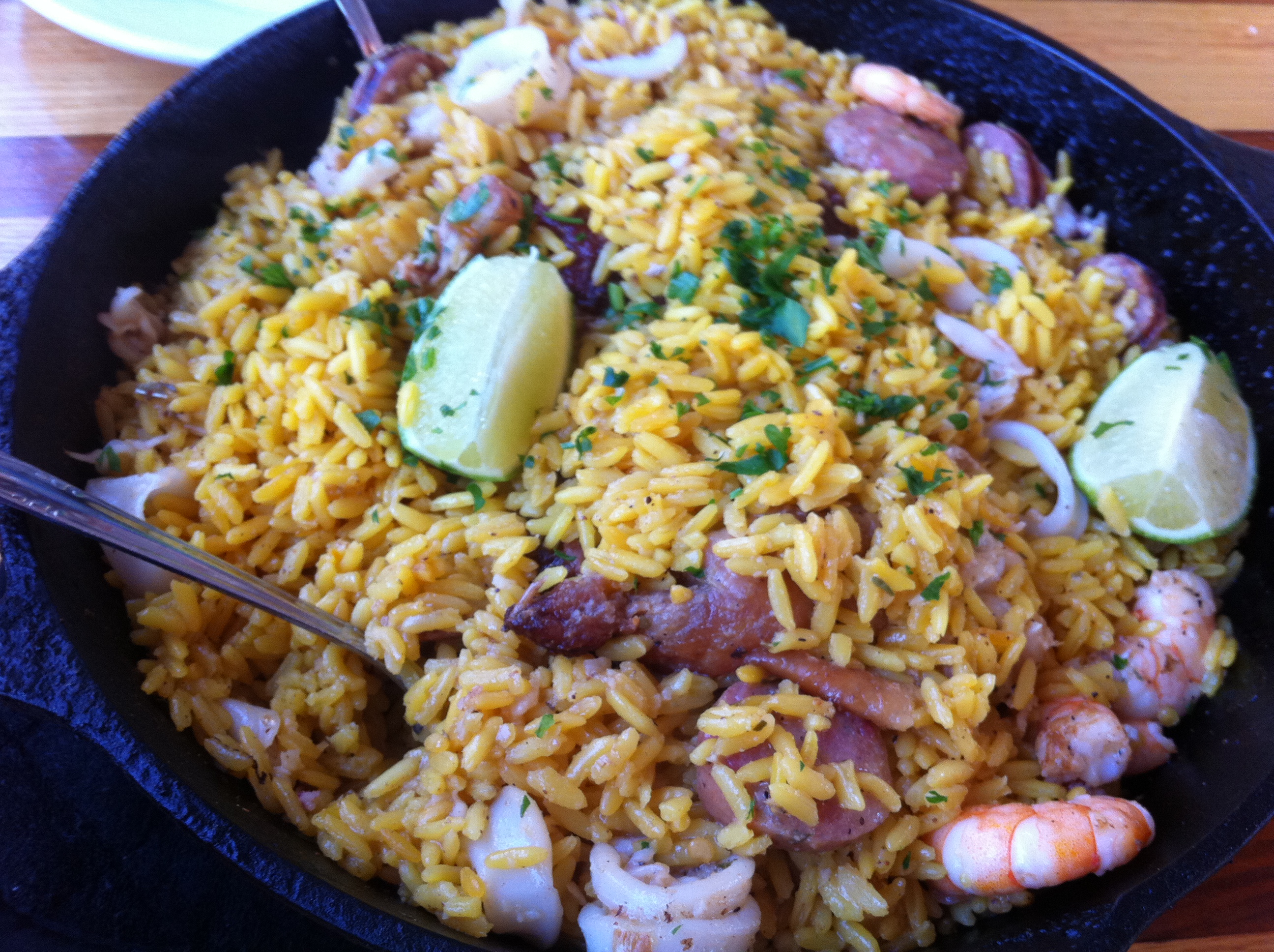 The food came out quickly and was quite yummy. The paella for two was way more than we could eat and we will get to enjoy it again this weekend. It was also pretty cheap as the two of us ate for less than $30 with the beers.