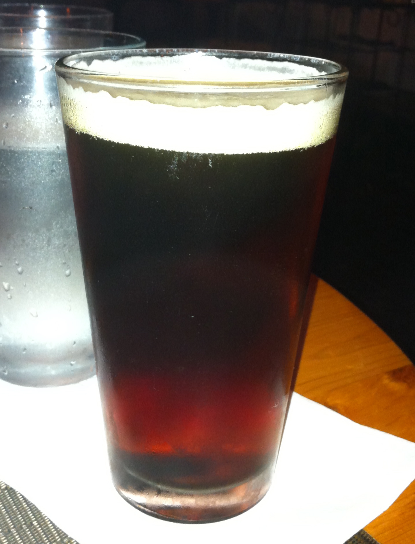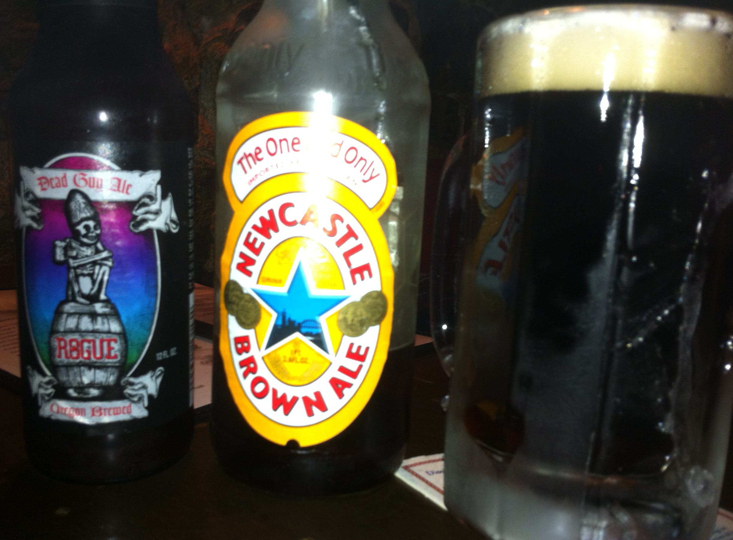 Our beer selection for the first phase of the night is a Rogue Dead Guy Ale from Oregon and an 18-ounce bottle of Newcastle Brown from England. The Newcastle comes with a big, frosty mug, a nice touch that Eve really enjoyed. The ambiance of the Tap is perfect. It’s comfortable, laid-back, and the service is attentive. This is the start we need for our weekend wind-down. We will have to come back and see about those burgers on another night. Money saving alert: they have $2 Sam Adams beers and half-price appetizers if you go from 5-7PM on weekdays.