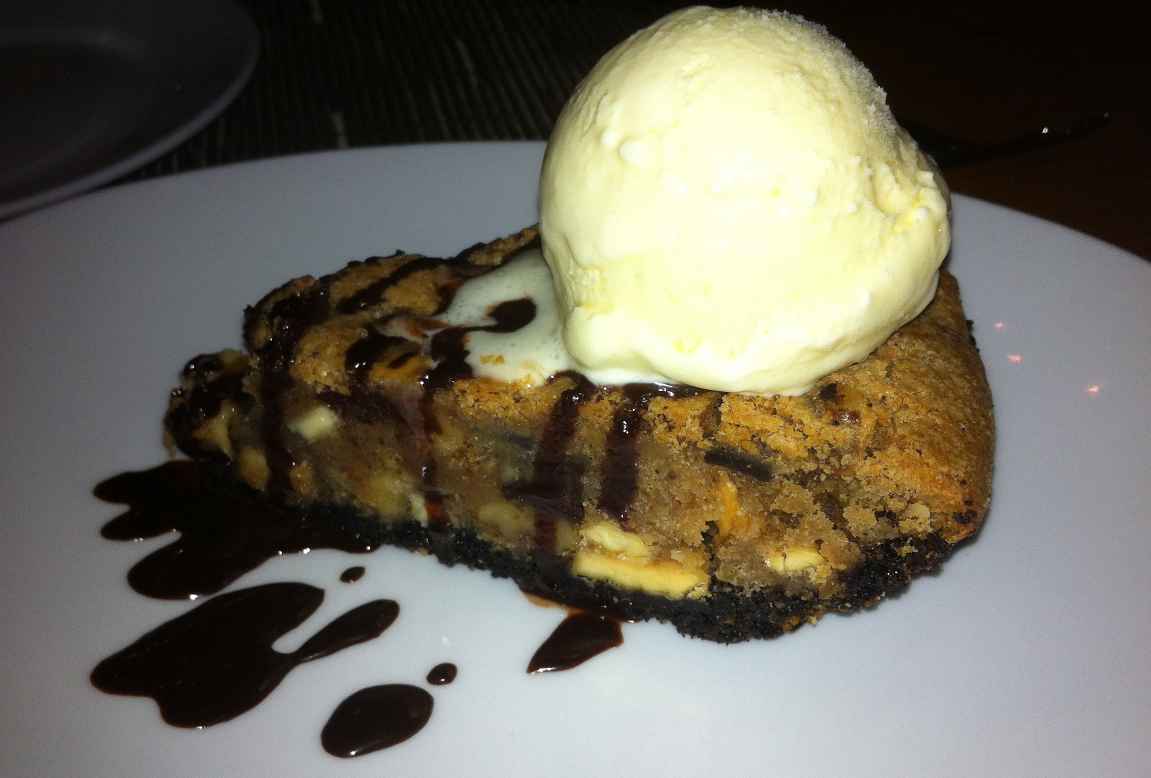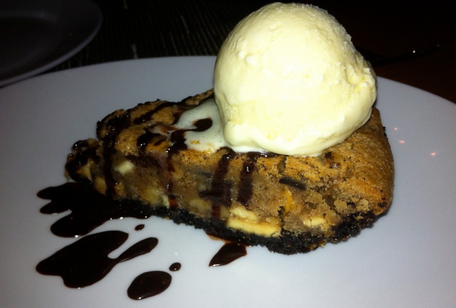 She’s not too full for dessert, and it’s her turn to order something to share. She wisely chooses the Tollhouse Pie, which has dark & white chocolate cookie batter, walnuts, oreo crust, and vanilla ice cream. As you can imagine, this does not stay on the plate long, and we discuss whether it is rude to lick the plate when we are done.