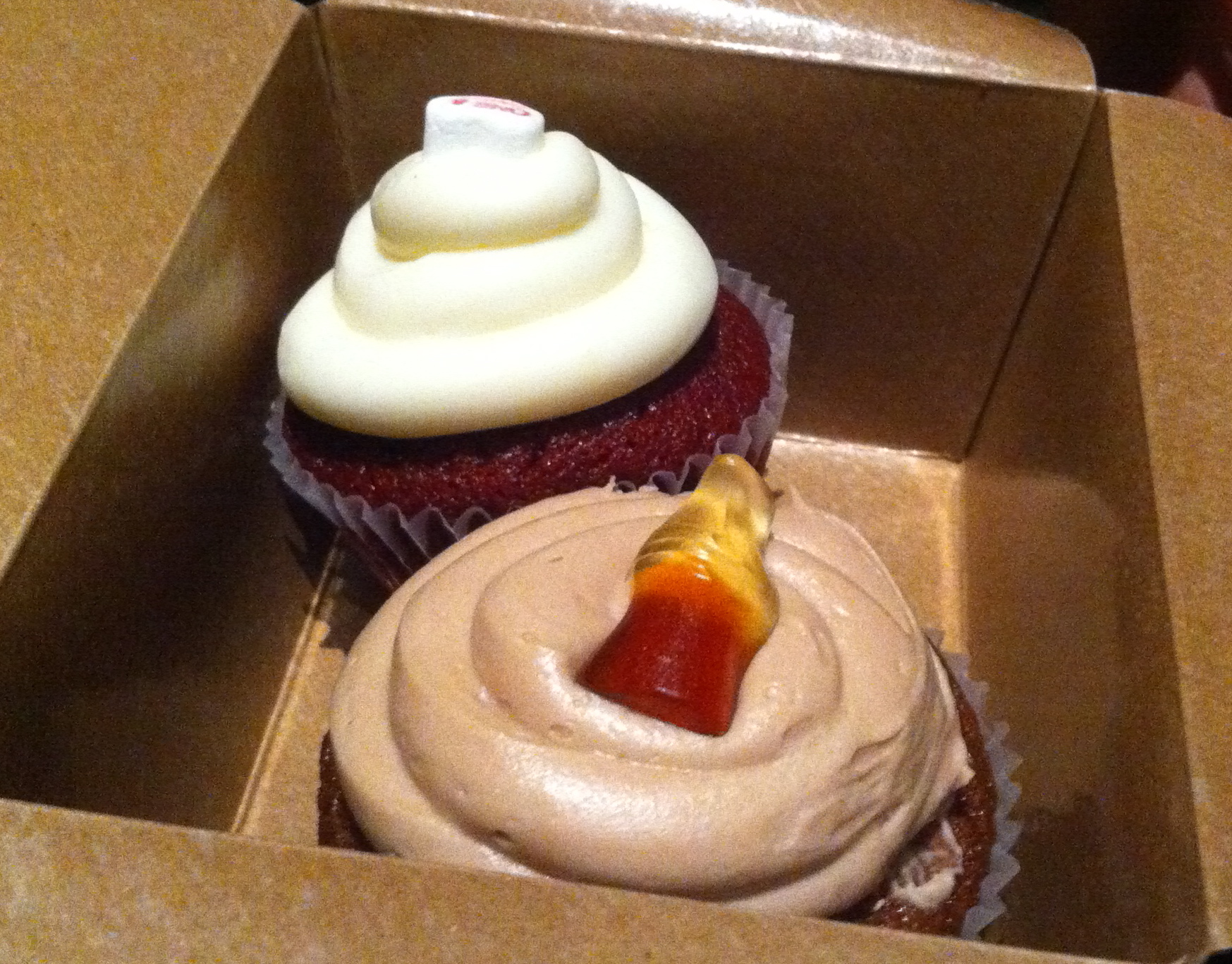 It’s delivered with 4 freshly baked ginger snap cookies – they are light and refreshing and the milkshake is like having a nice kahlua and milk before bedtime. They know you are full, and they want you to sample more of their home baking, so they send us home with a to-go box of two cupcakes. One is coca cola cake and the other is red velvet cake, and we actually waited until Sunday before polishing them off with family.