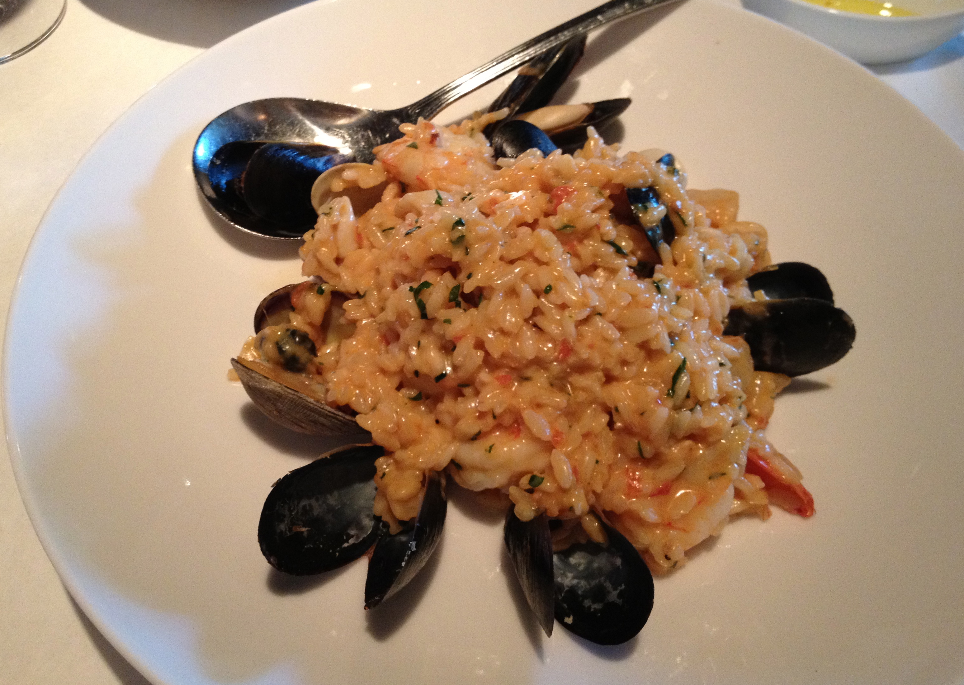 We are pretty full, so we decide to split the seafood risotto. There is plenty for sharing and the plate is full of shrimp, clams, mussels, and calamari. The chef did a wonderful job on this dish and it was a great combination of the fruits of the sea.
