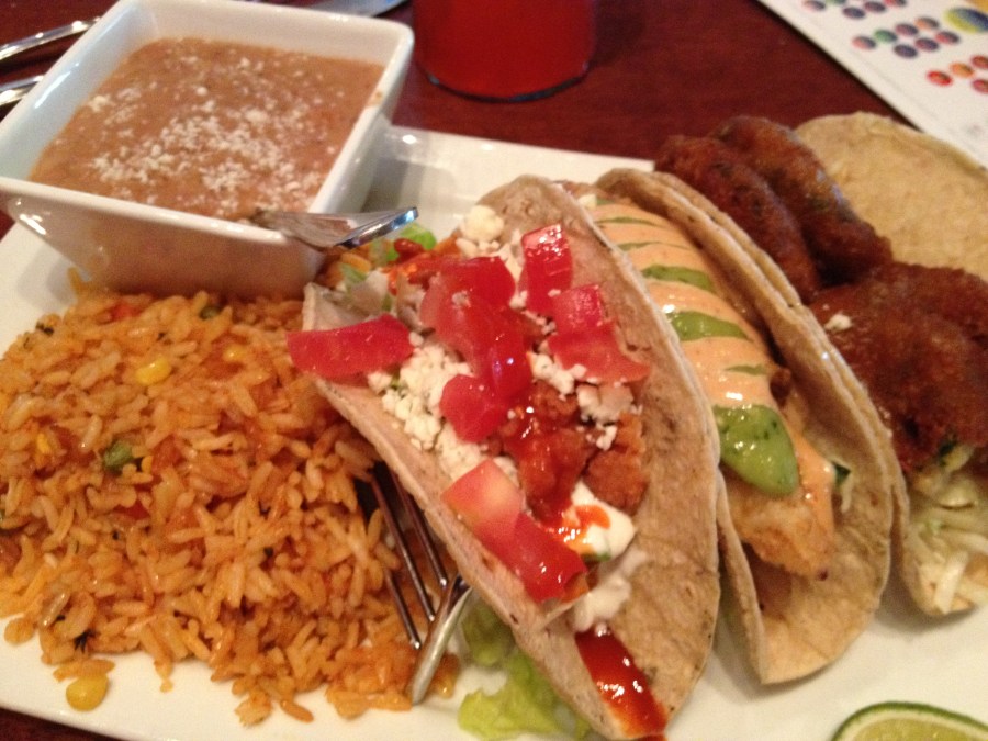 As for entrees, Elliott orders the taco trio and makes a topping substitution (more on that later).