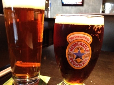 We have been to Stats for some parties, but never on a date. It’s a hip sports bar in a cool old building. Compared to the Biergarten, the beer list is populated with ordinary offerings from mass-produced breweries. We settle for a Fat Tire and a Newcastle.
