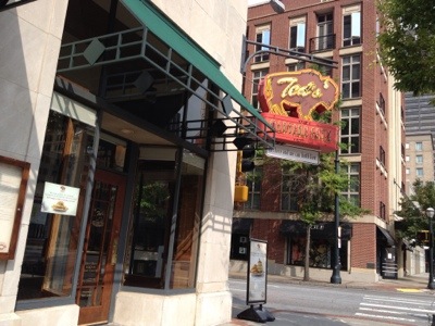 This is a generous portion of hummus and pita, with some flat bread as well. The olive tapenade is a nice touch too. We watch our stock portfolio tank on the giant news ticker (it was a bad day in the market) and head over to Centennial Olympic Park.