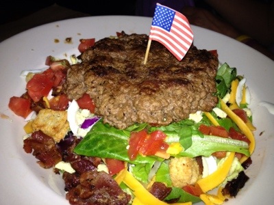 Meanwhile, back at the dinner table, we have ordered a burger that looks like a burger and a burger that looks like a salad.