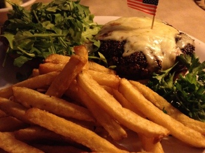 This is our favorite item on the menu, but I don’t want to order the same thing, so I get the bison peppercorn burger, a new item on the menu.