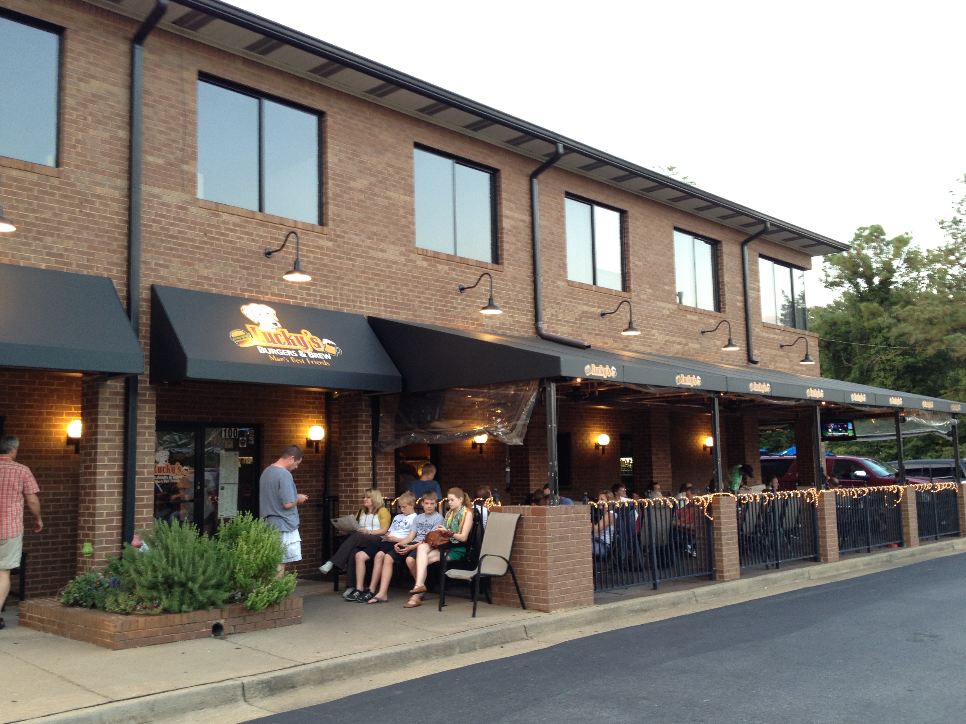 The second stop is a half mile away so we walk off some of the Irish cheese and arrive at a pretty crowded Lucky’s. The place is hopping during the first seating, with mostly families taking up the inside and couples on the outside. Since we are willing to sit outside we are lucky enough to slip into a table for 2 with no waiting.