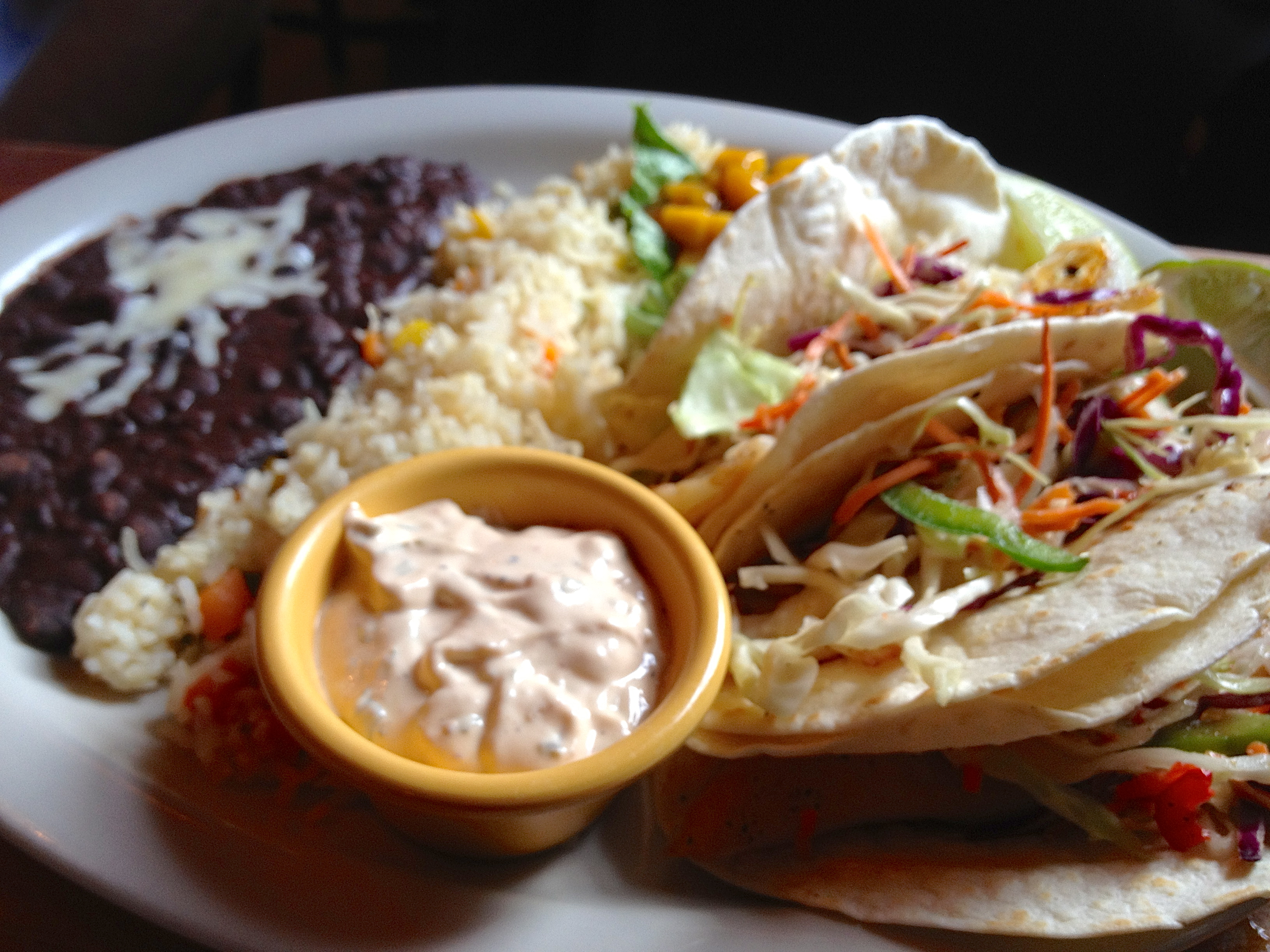 It’s time to order, and it’s a hard choice to make. The parents go with the soft fish tacos, accompanied on the plate with some beans and rice.