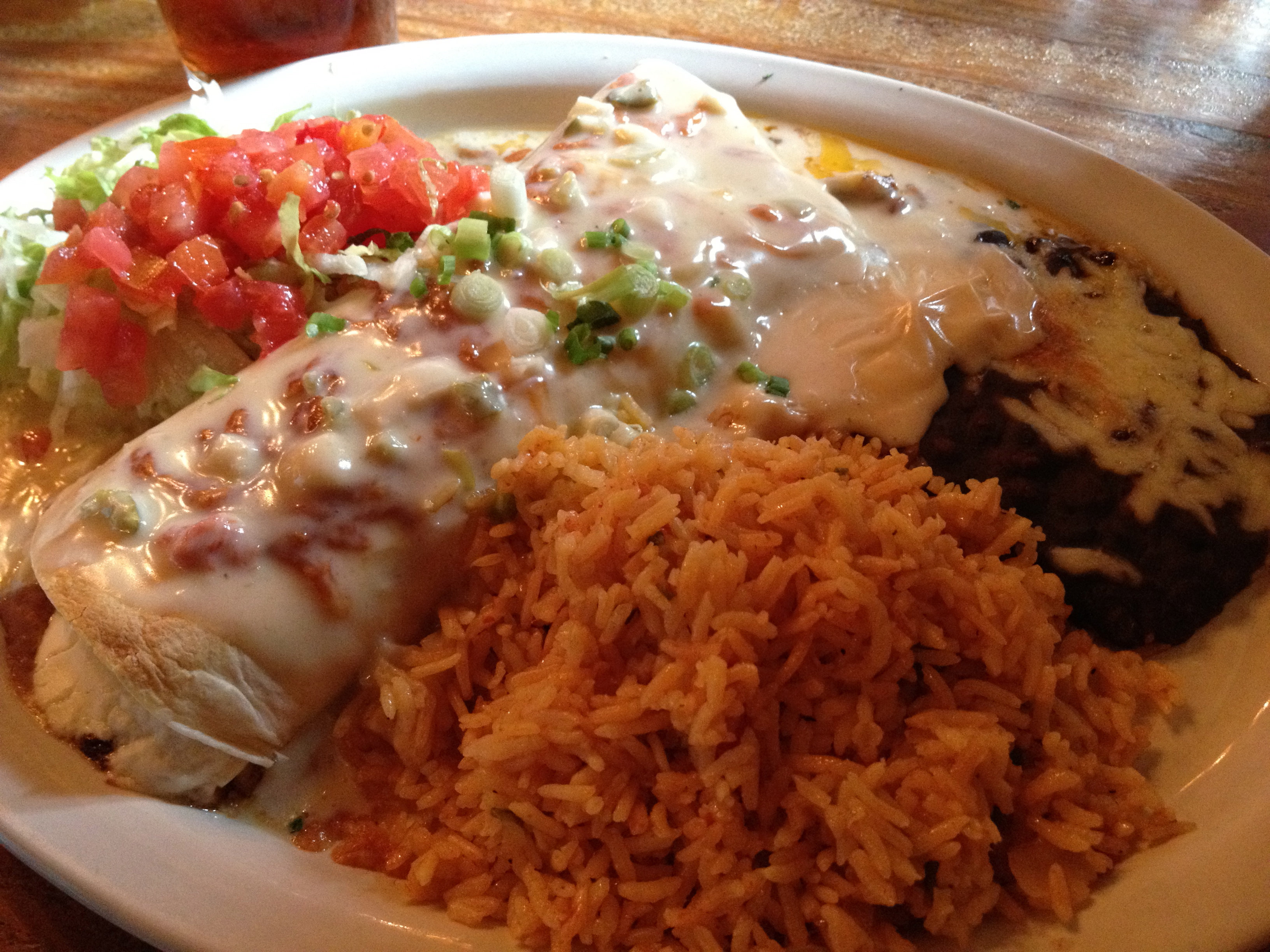 Notice the big chunks of avocado in the salad, a few of which she was kind enough to donate to my plate. Not that I needed any more food, because for some reason known only to my stomach, I order the “El Gordo” burrito.