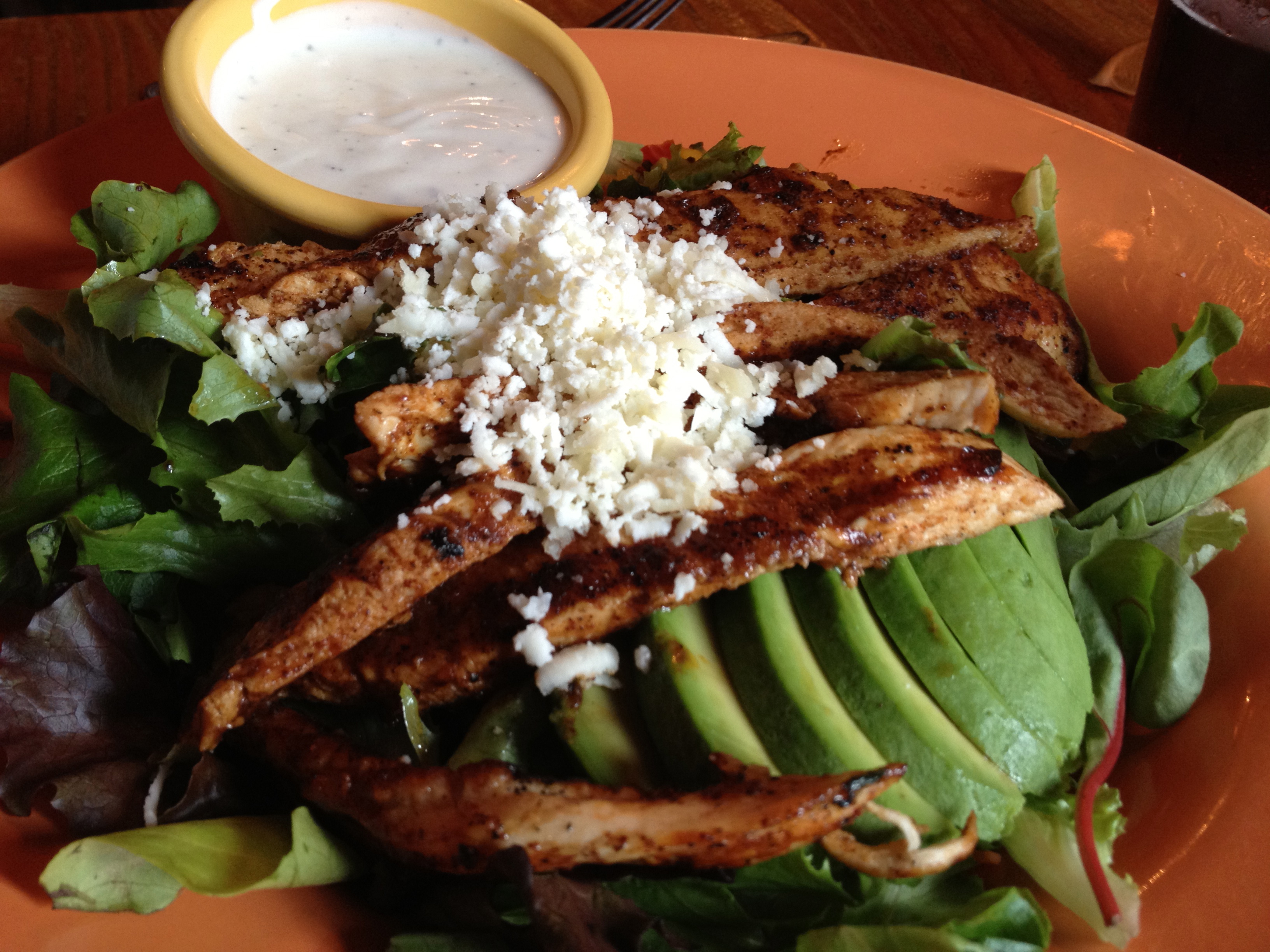 There were no leftovers. Eve is the sensible one in our bunch and chooses the grilled chicken salad.