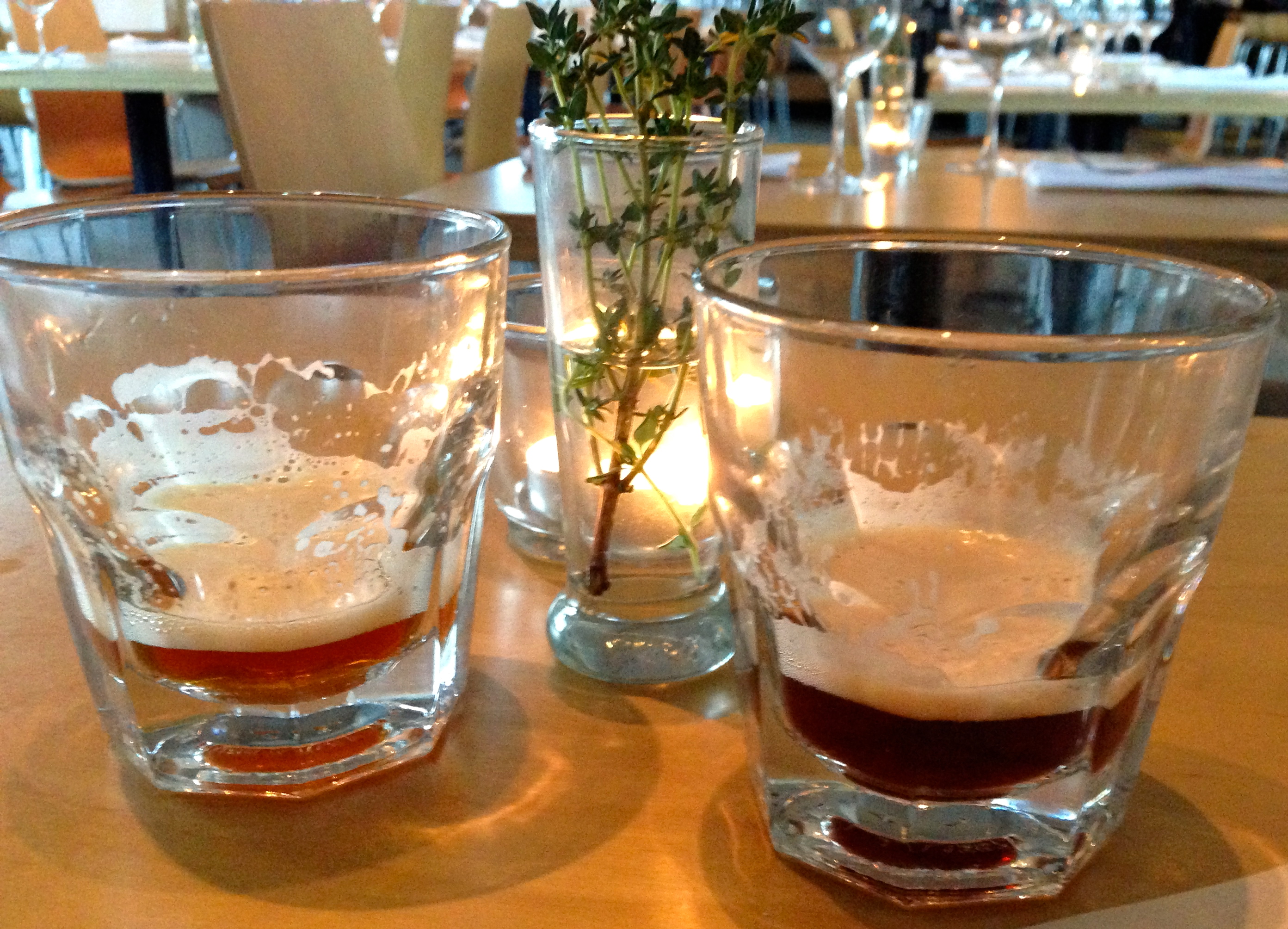 Our waiter offers to bring us tastes of the red ale and the brown ale, a nice touch. If you are ever undecided about a beer on draft, ask your waiter to bring you a sample. Most good bars will do that. Neither beer pops our top, so we decide to go big with tonight’s carbonated adult beverage.