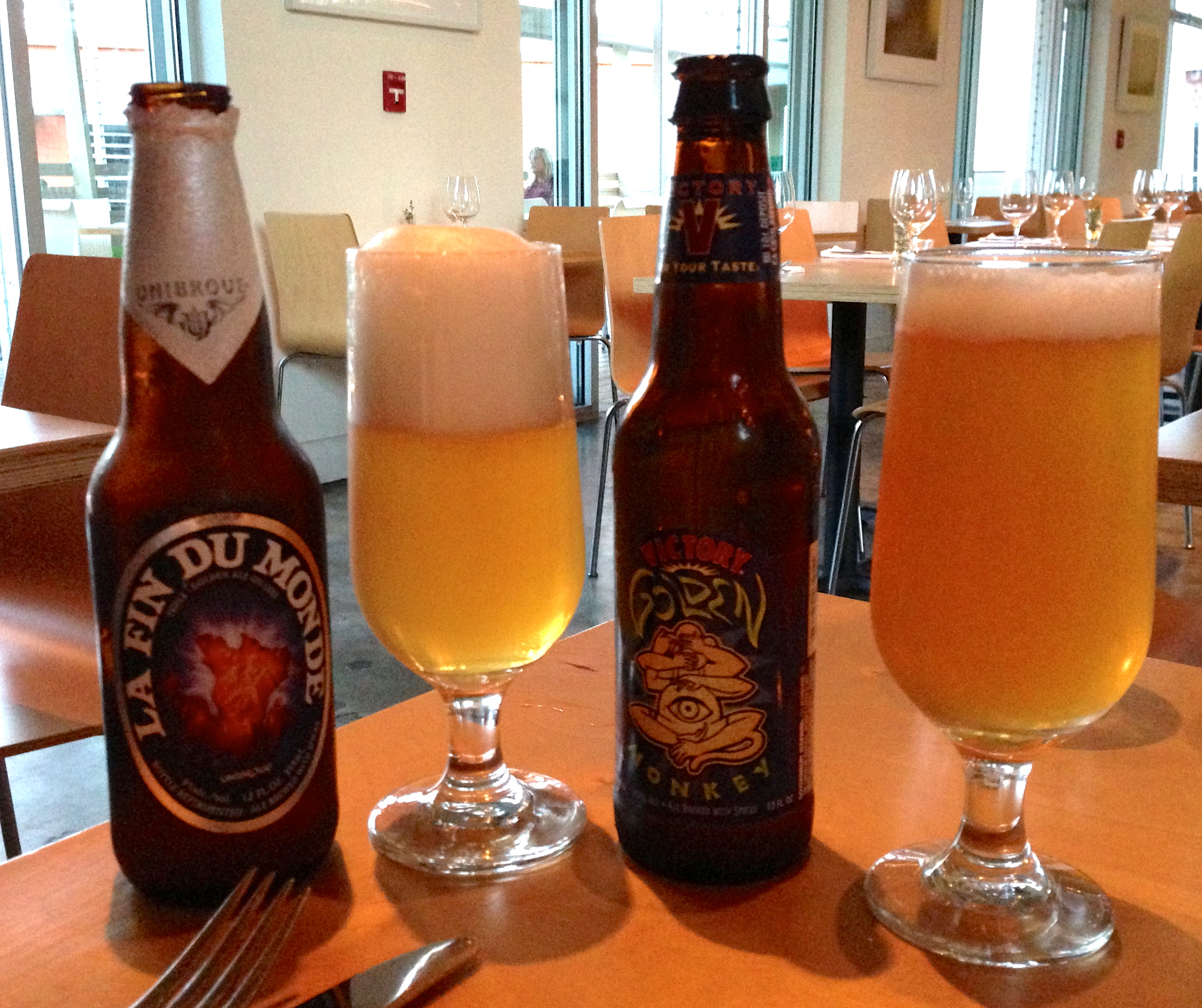 La Fin du Monde is from Montreal and shows that the Canadians can do a Belgian just as well as the Belgians. This is not our first glass of Victory Golden Monkey from Pennsylvania and there’s a reason for that–it’s one of the best Belgians we have had. Who wins the Big Belgian Beer Brew-off tonight? To me, it’s Victory by a sip. The finish is amazing and should be experienced by all beer drinkers. Eve likes the Canadian beer better, so we’ll call this one a tie, eh?