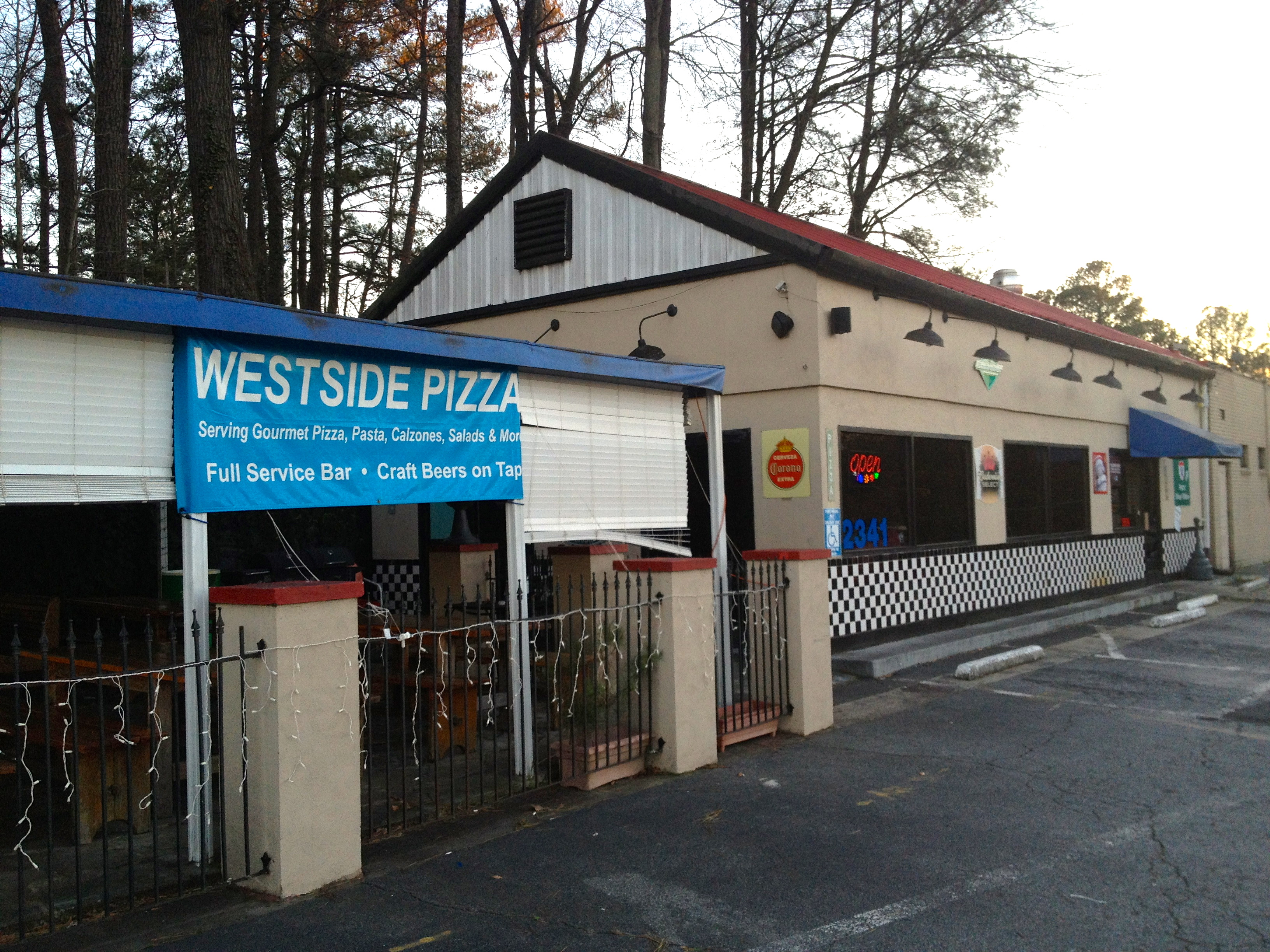 We are at Westside Pizza because of a recent article in the AJC about two guys who have eaten at 99 pizza places in Atlanta and they deemed Westside the best in the city. The conventionally-cooked pizza here will be judged against two wood-fired Date Night favorites, Antico and Vesuvius.