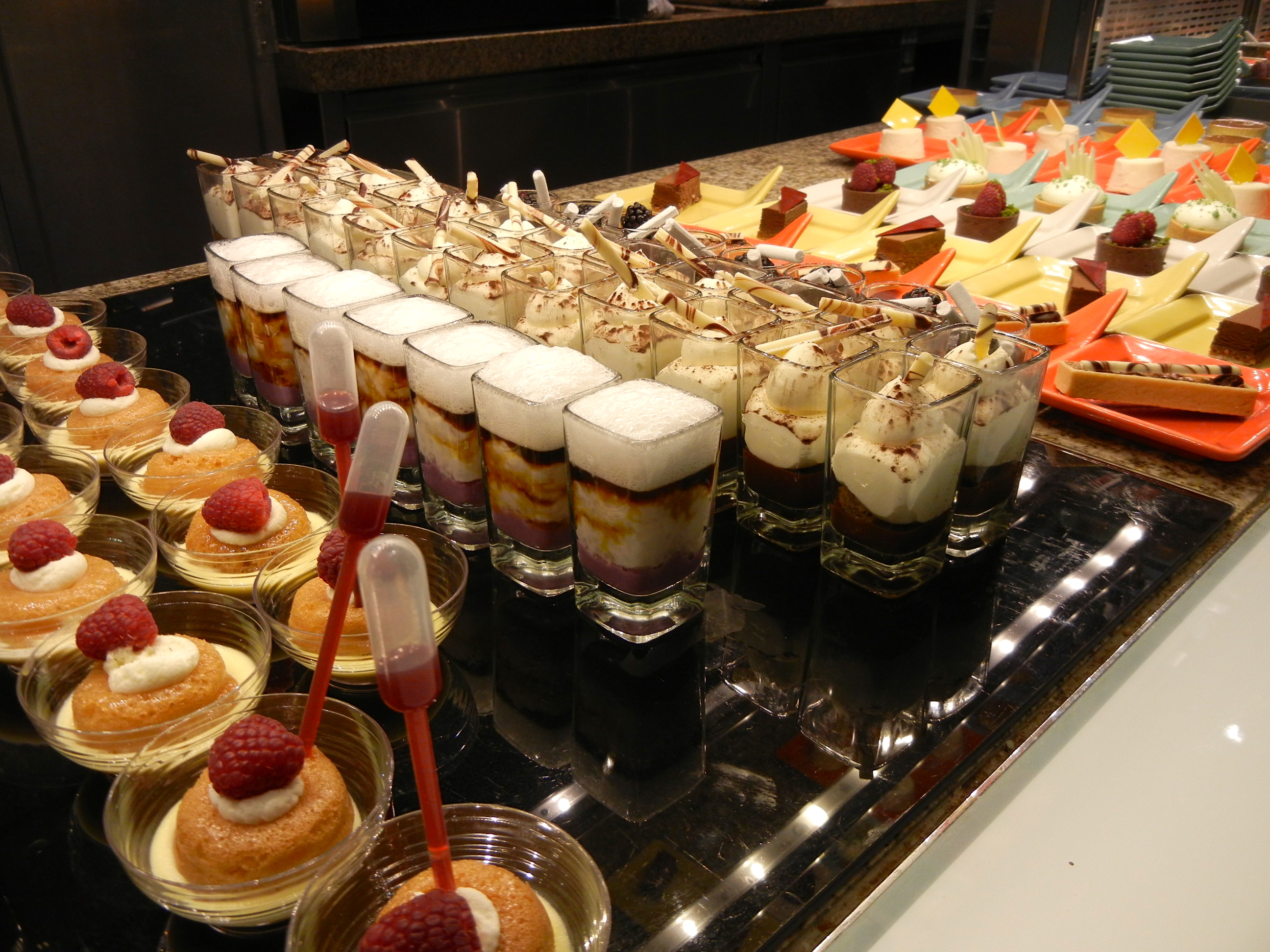 We must be in a dessert coma because we don’t take pictures of the available ice cream, hot chocolate chip cookies, hot chocolate lava cake, or of the made-to-order crepe station. Well, here’s more of the offerings…