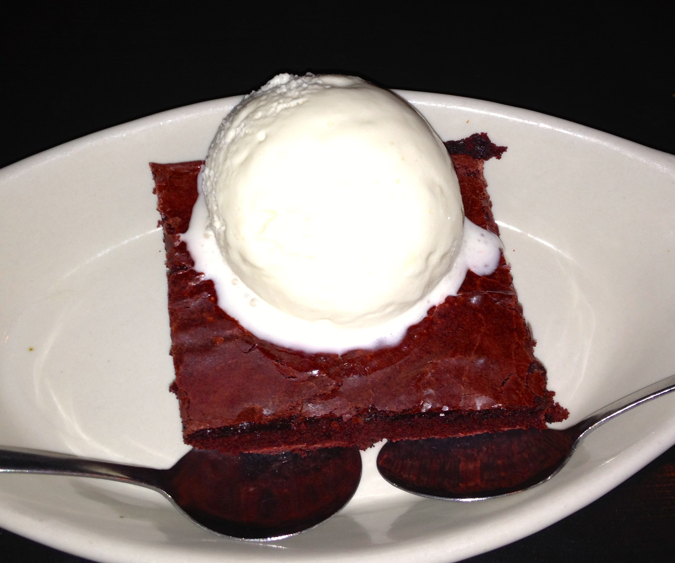The heavenly dessert makes up for everything. The red velvet brownie with cream cheese ice cream is to die for! Moist cake and spot-on ice cream make us thankful that we are served a generous portion.