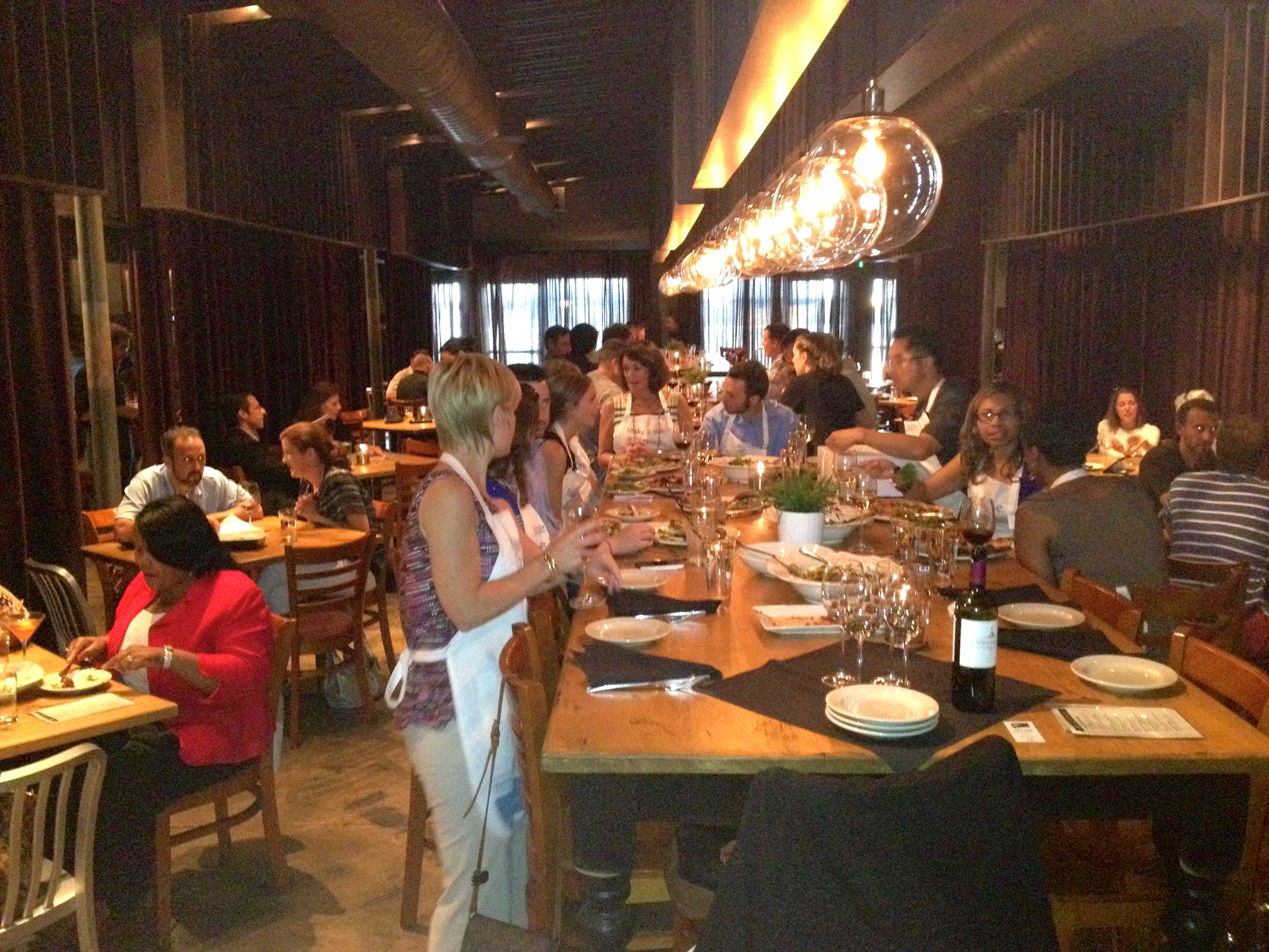 Our table is in a secluded corner of the dining room. There are long tables for large parties, and this joint is rocking.