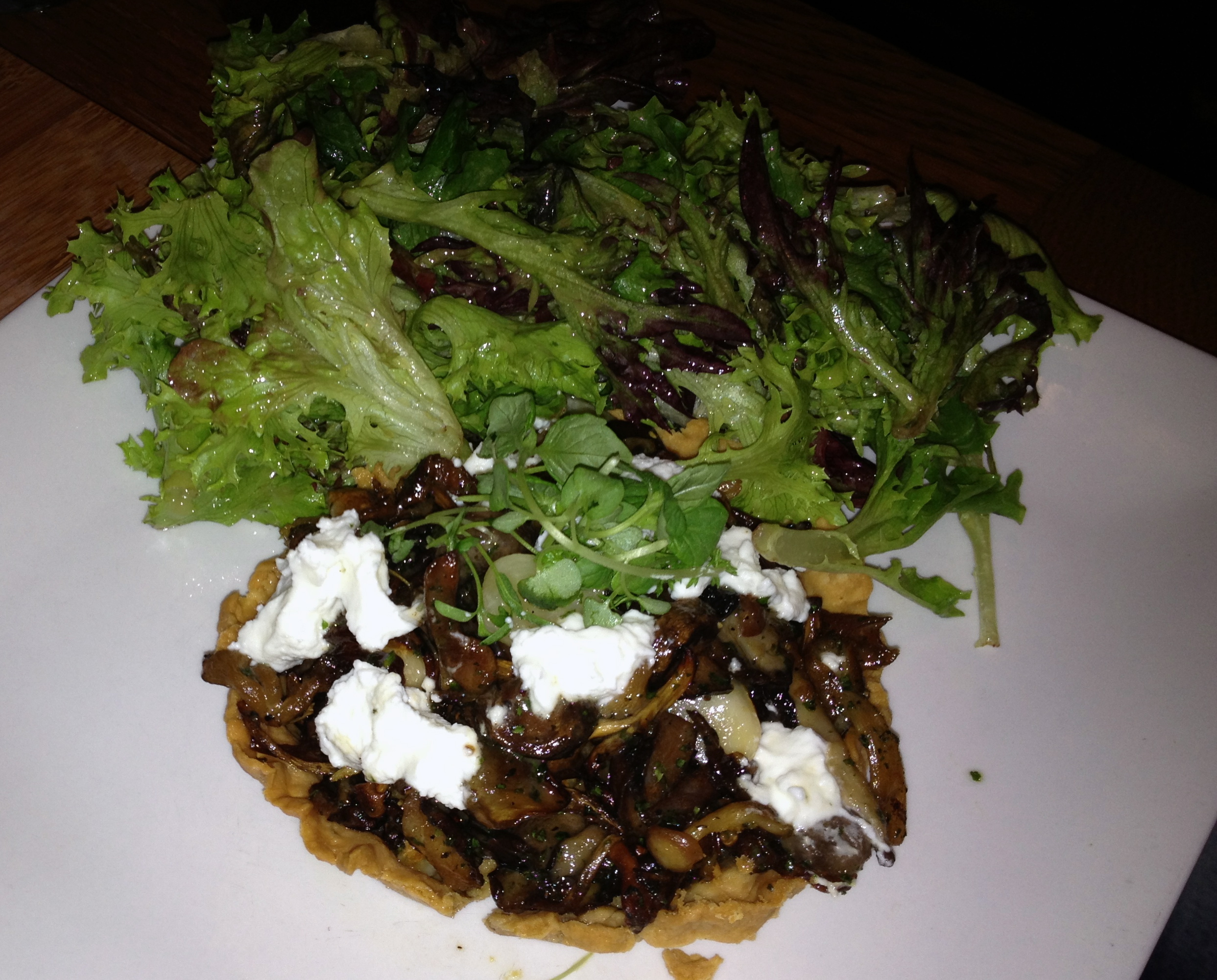 Diane gets the mushroom tart and we all taste it. There’s goat cheese in there with the ‘shrooms. It’s really good and perhaps the best dish of the three ordered.