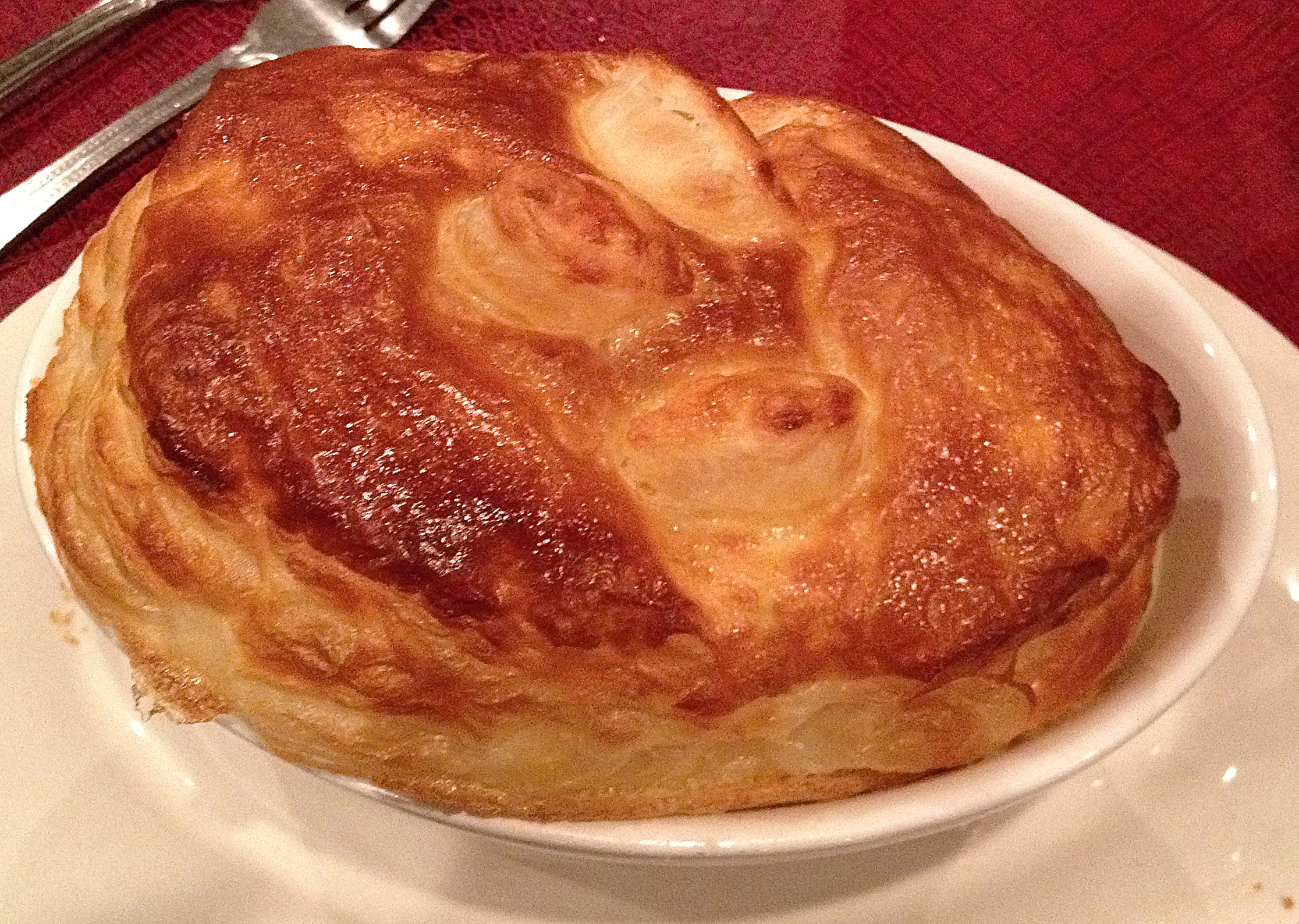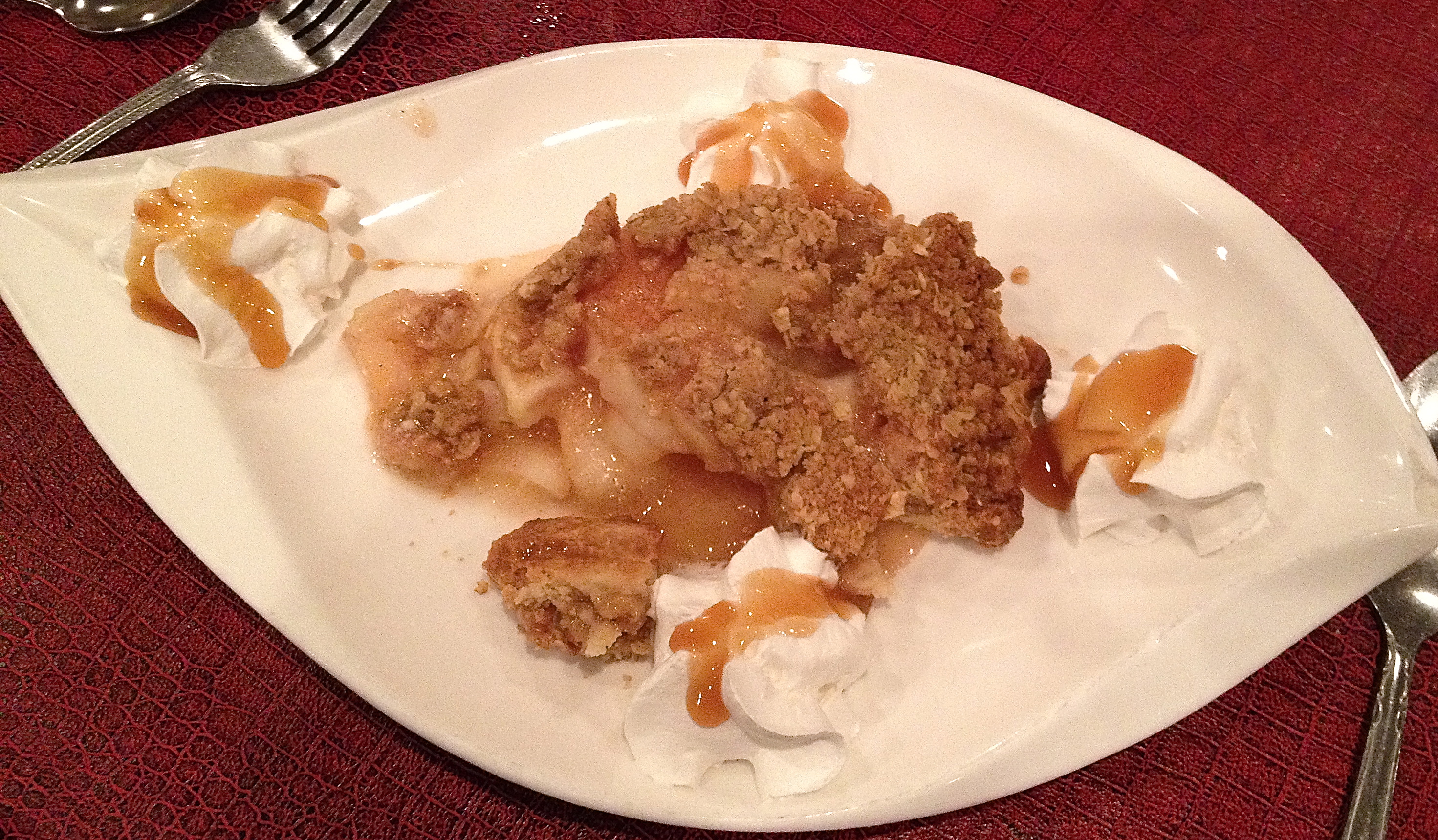 Since we didn’t have an appetizer, we feel we can order dessert. It’s apple season, so we order the apple pie and five spoons.