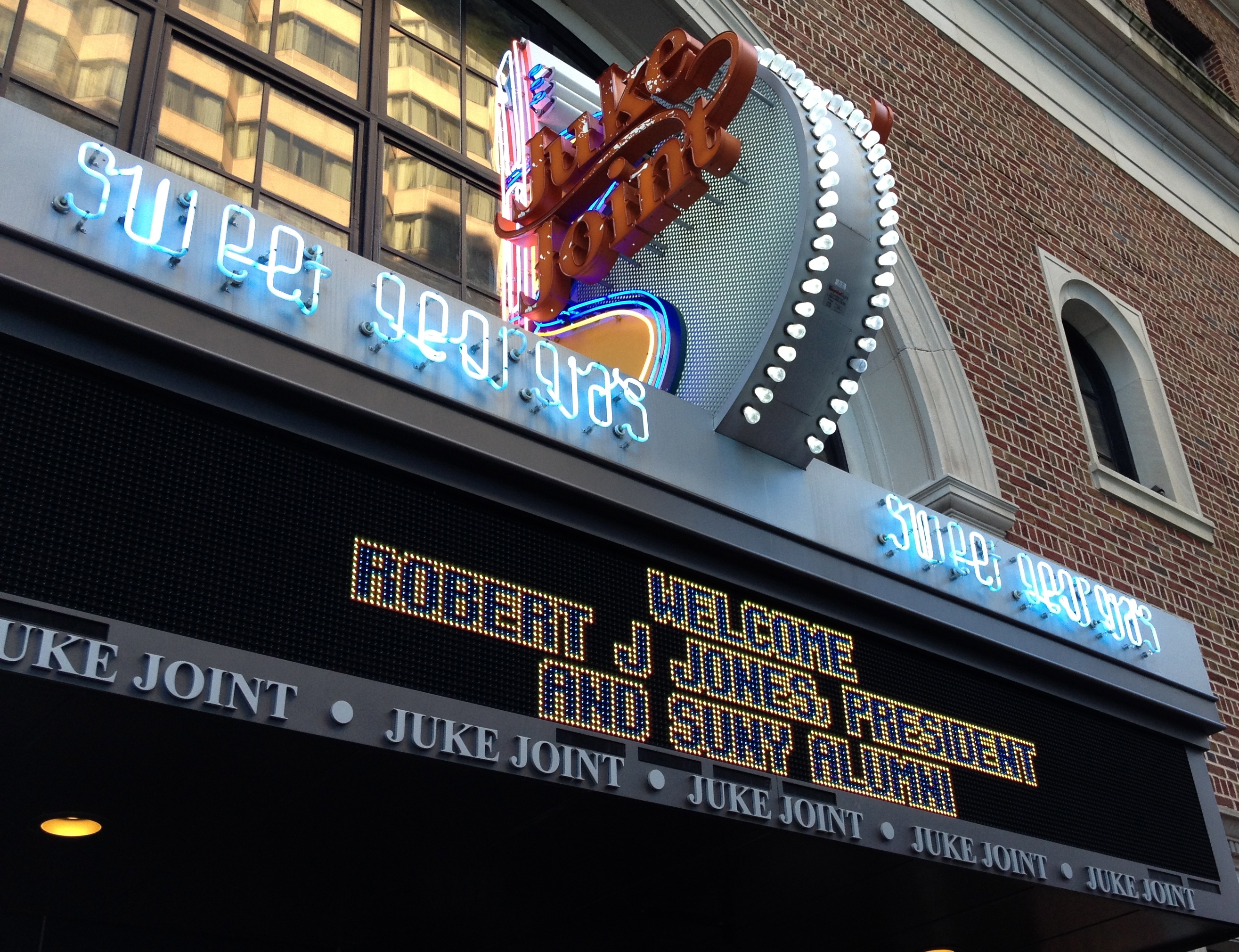 Date Night starts in a bar and finishes in a juke joint. That’s a cool way to spend a Friday night, Daddy-O. We are headed to a State University of New York at Albany alumni gathering at Sweet Georgia’s Juke Joint. The new president of the university, Dr. Robert Jones, happens to be in town, and we are going to meet him. One of the Joint’s owners, Terry Harps, is an Albany graduate. It’s a party with the prez.