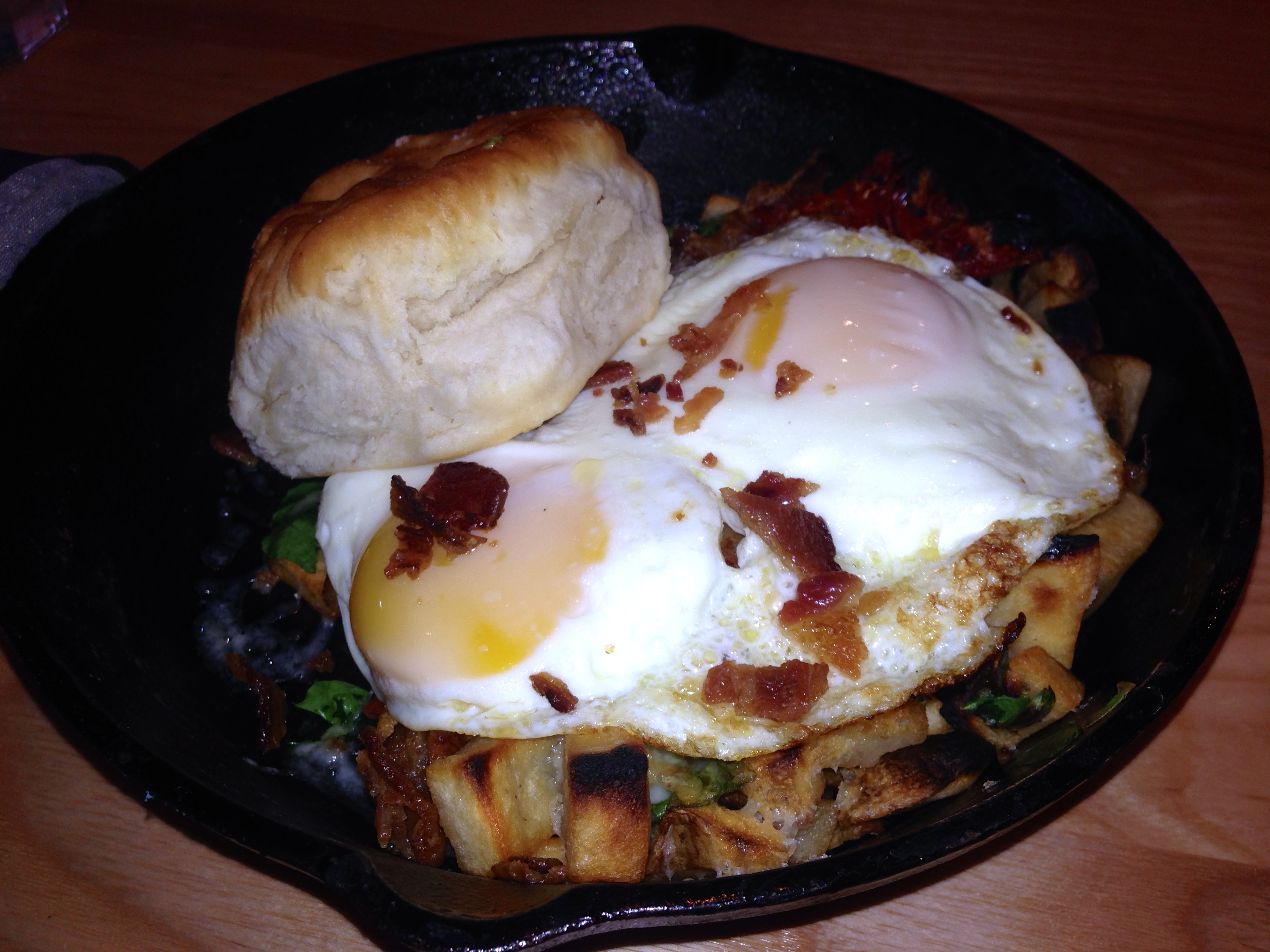 You can’t visit JC’s without having a skillet meal. We get the Spinach and Bacon Skillet.