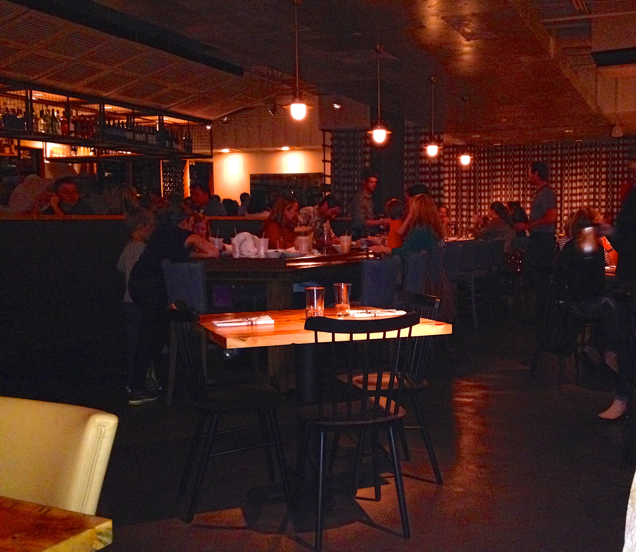 The decor is Georgia coastal, with large shutters hanging over the bar. It gets loud at times, with the Date Night decibel meter hitting about 90 dB. The crowd is young, hip, and happening, and the families with children clear out by 7:30.