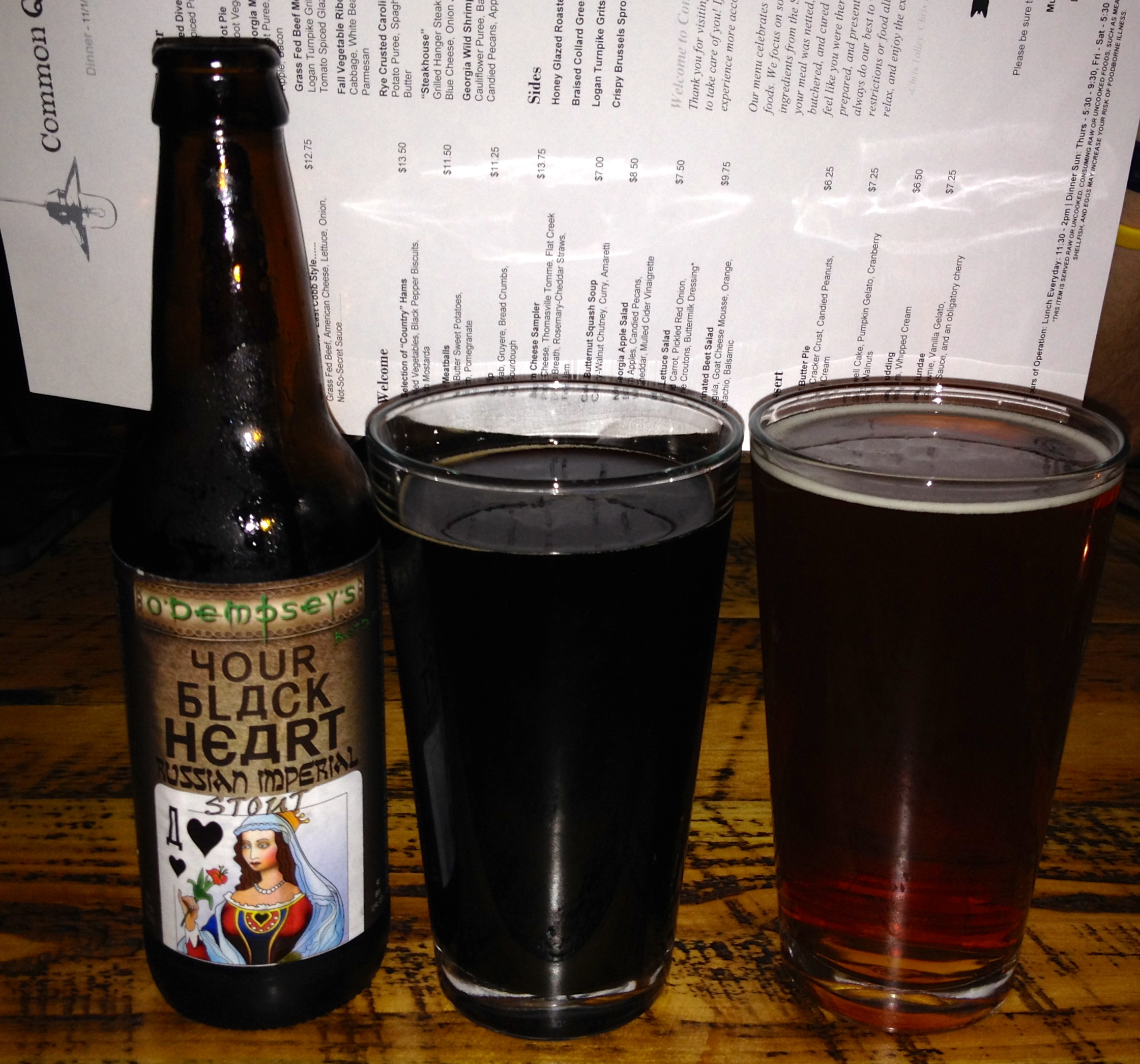 After reading a blurb in the local paper, we made our reservation two weeks ago. This location was a Carrabas, a Scalini’s and a short-lived Mexican place among others. Common Quarter is owned by the same people who bring us Muss & Turner’s (Date Night #50, 11/23/12) as well as Local Three (Date Night #46, 10/12/12), two places we absolutely adore. They have been open for three weeks. We have a feeling this is going to be good.