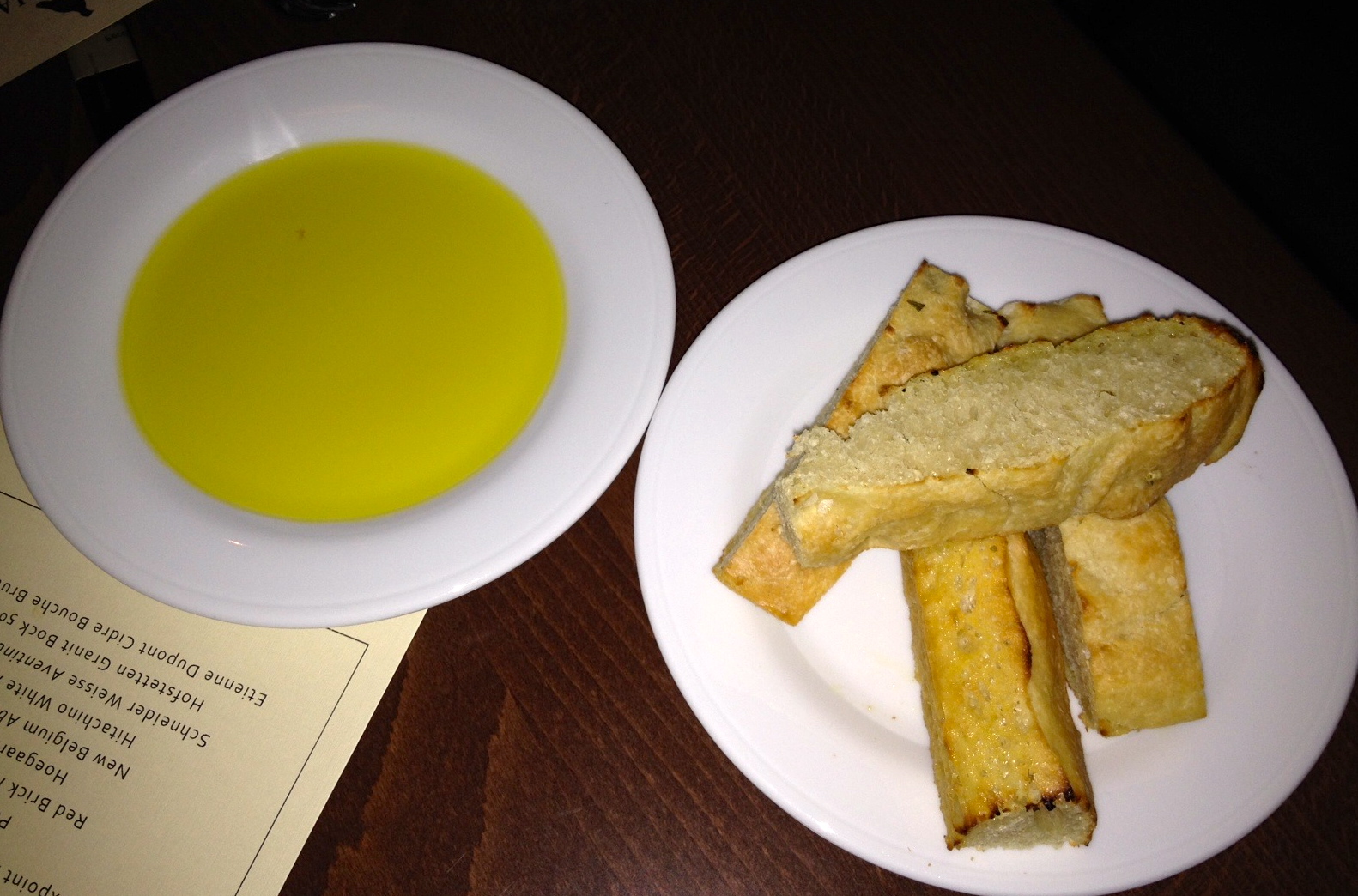We arrive around 6PM, which allows us to pick a nice table. They aren’t too busy yet, but they will be. We go without a reservation because the only thing available is either very early or very late. Fortunately for us, they keep half of the dining area open for walk-ins. We are greeted by our server, Chris, who brings us some nice focaccia and olive oil.