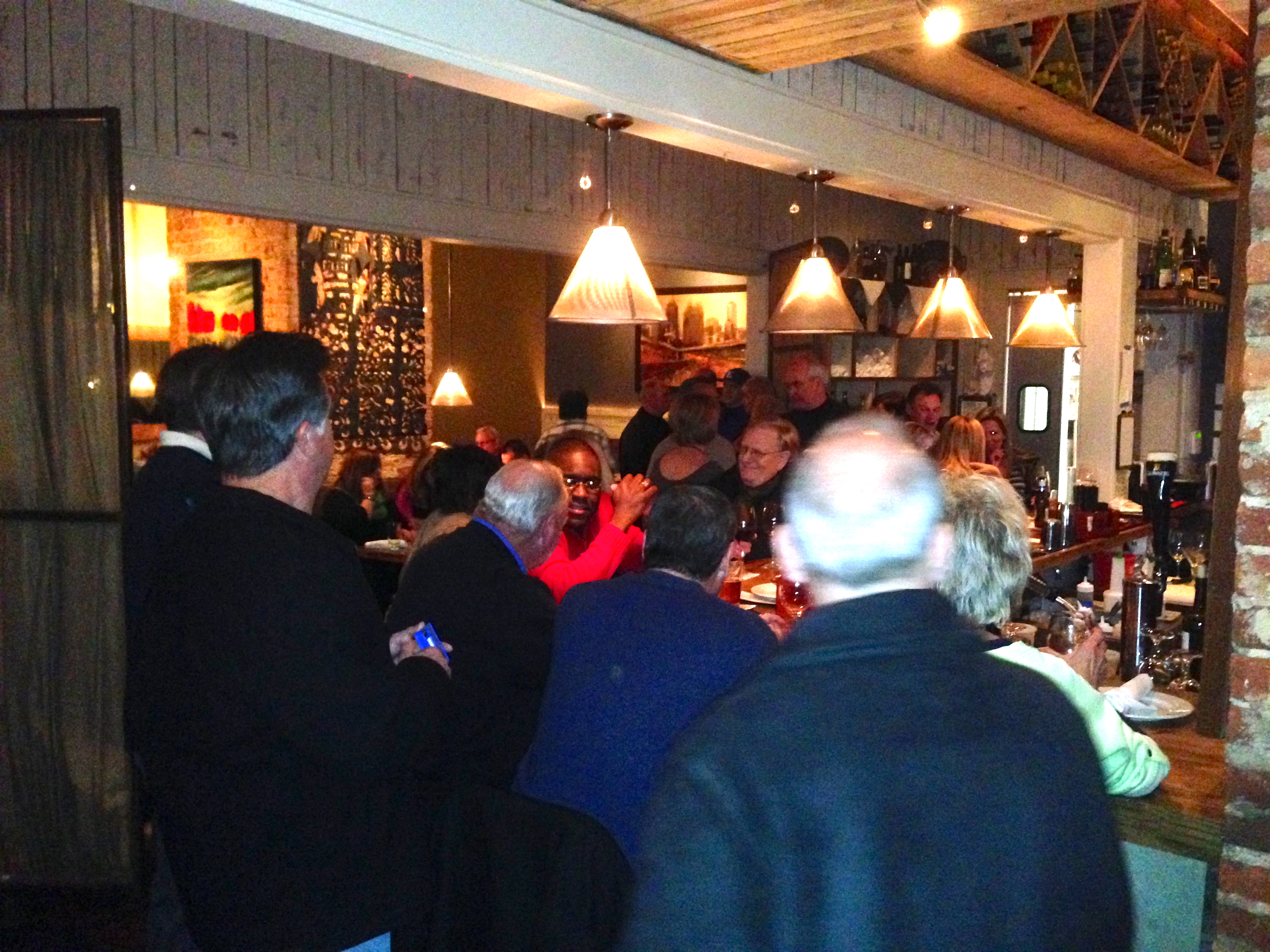 We get there early, and by 6PM, they are standing two deep at the bar waiting for tables. It’s an older crowd that is spending a lot of money on whiskey by the glass and wine by the bottle. A tip if you go: don’t get a table near the bar because someones rear end will be right next to you the entire time you are eating. Fortunately, our table is away from the bar.
