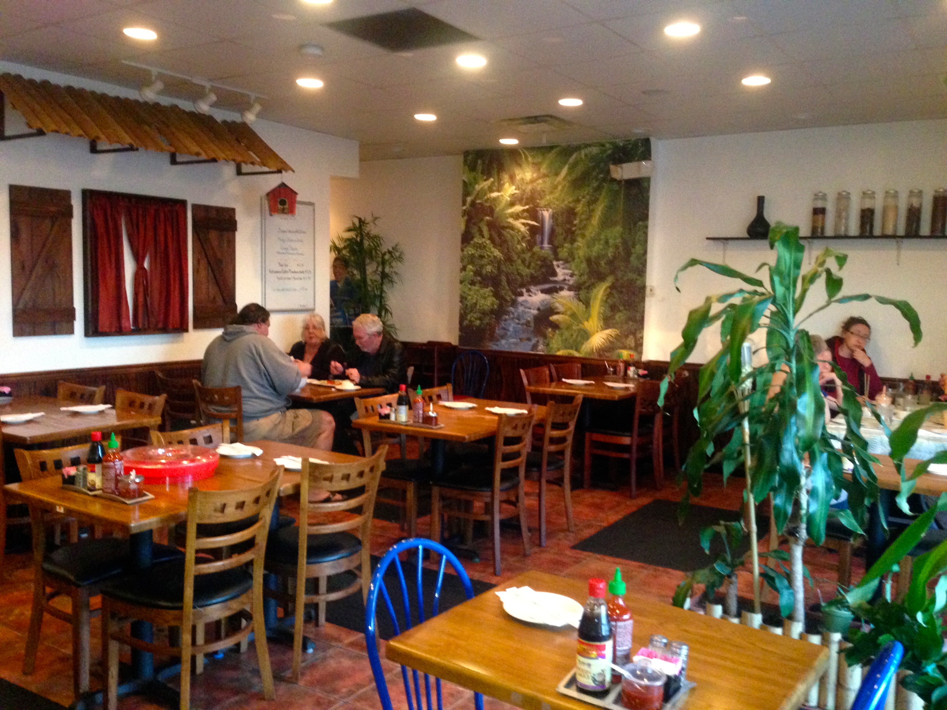 By the time we are done with our “soup and salad”, Pho & Com is chaotic. People are standing everywhere–in the aisles, near the cash register, and outside. I am hungrier than when we walked in. We can’t get “Mom’s” attention to get more food or more water. The check arrives, which means we must be done eating. Too bad, because the main dishes, which we obviously should have ordered originally, look great. It’s probably better this way as “Pop” has to be swamped in the kitchen and some deserving group will get our table.