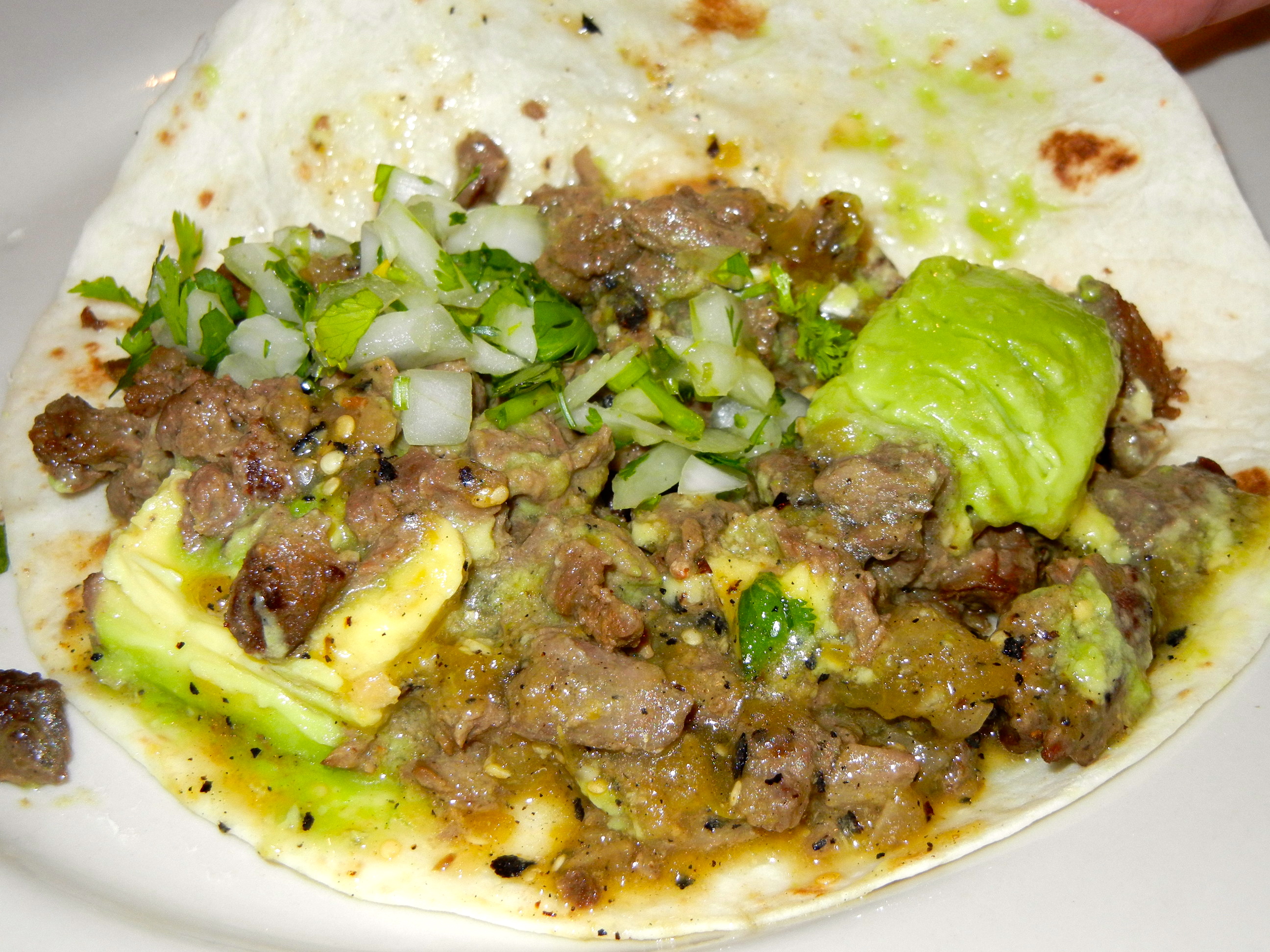 Here’s another huge taco. The cesina features steak in a green avocado sauce. I wanted to snatch one of those avocado chunks.