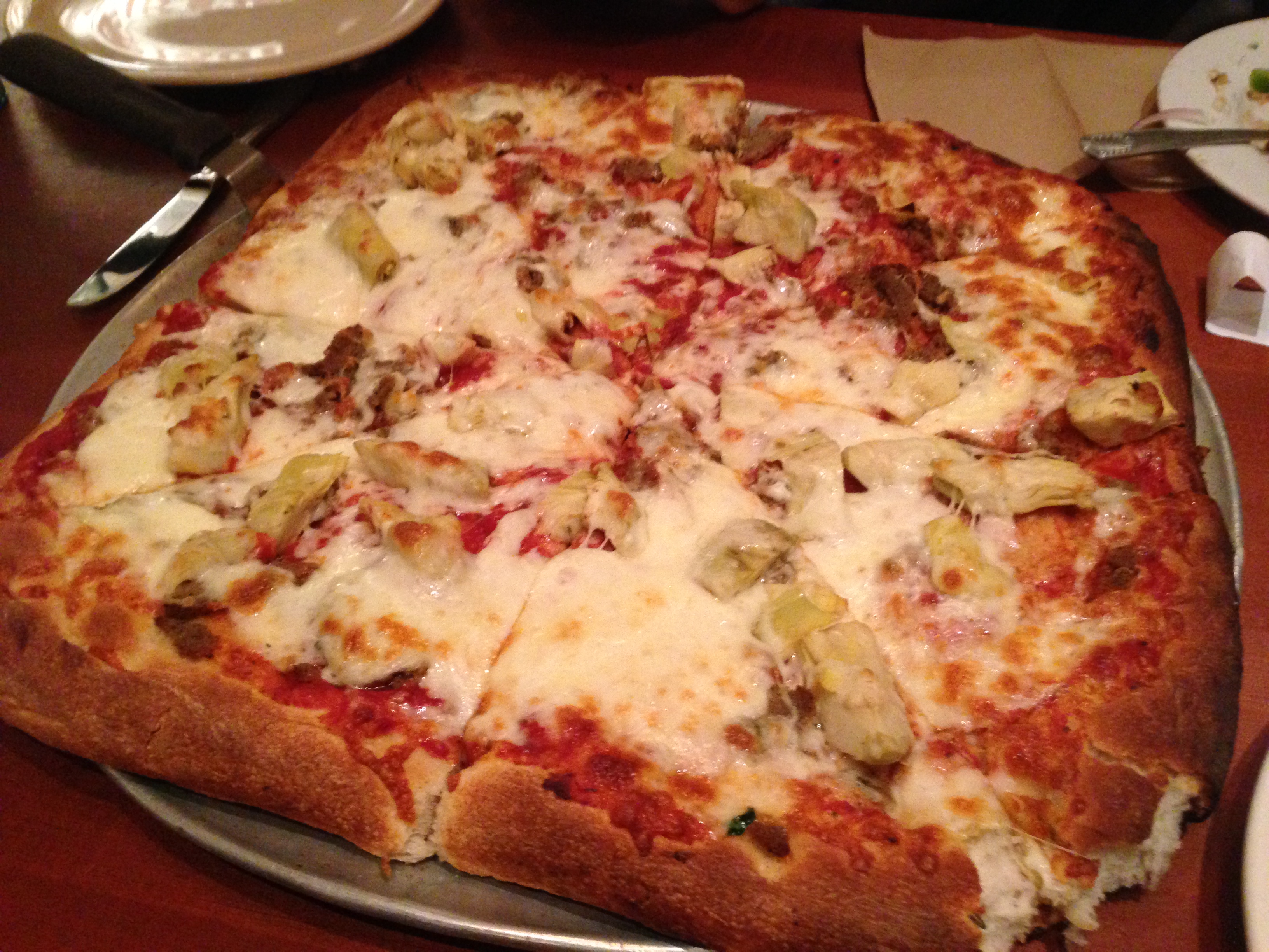 For the main event, we go big and we go Sicilian. Artichoke and meatball pizza? Why not–they will make any combo you wish.