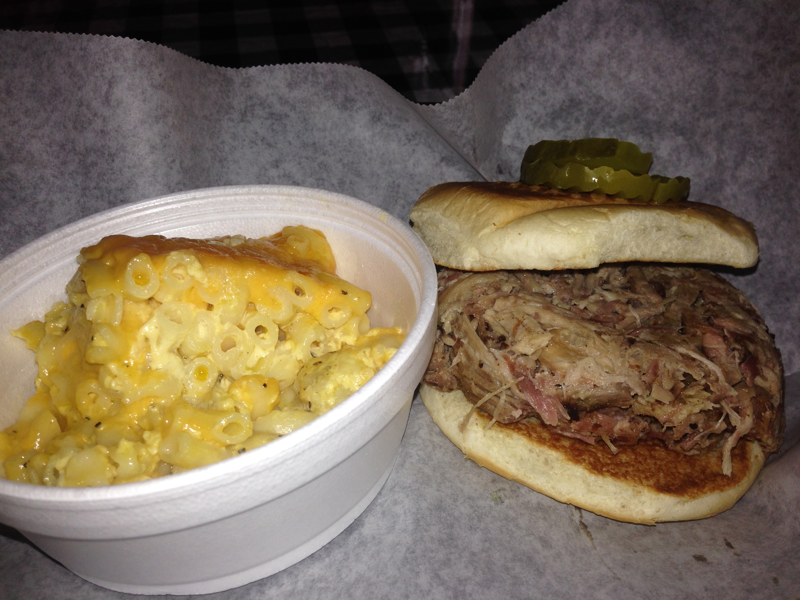 The pulled pork is moist with just the right amount of smoke. It doesn’t come sauced up–you get to put as much or as little as you want.
