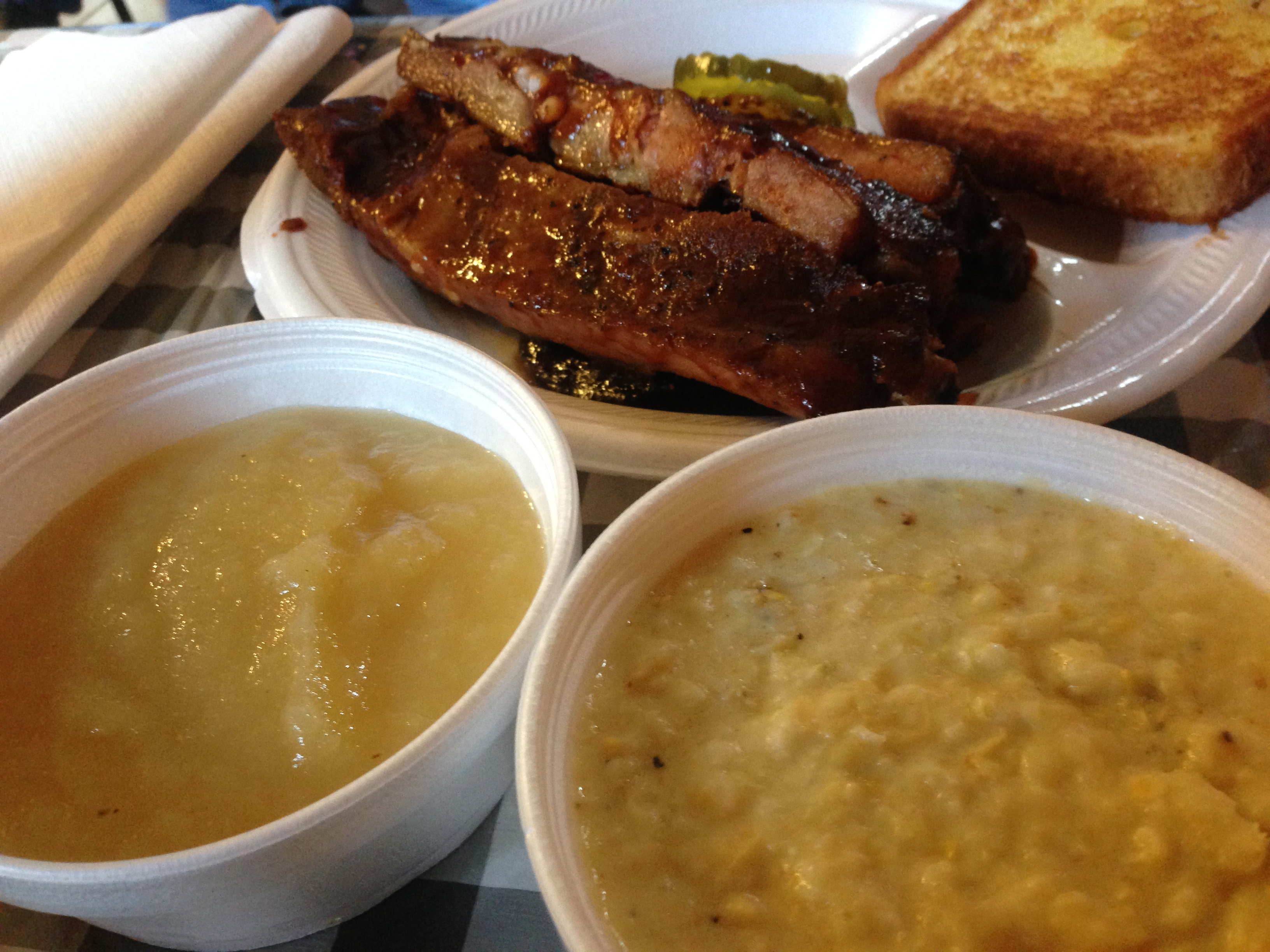 The ribs don’t have a lot of sauce either. They are moist and meaty, just the way we like them. There must be something illegal in the creamed corn. It’s sweet and totally habit forming.