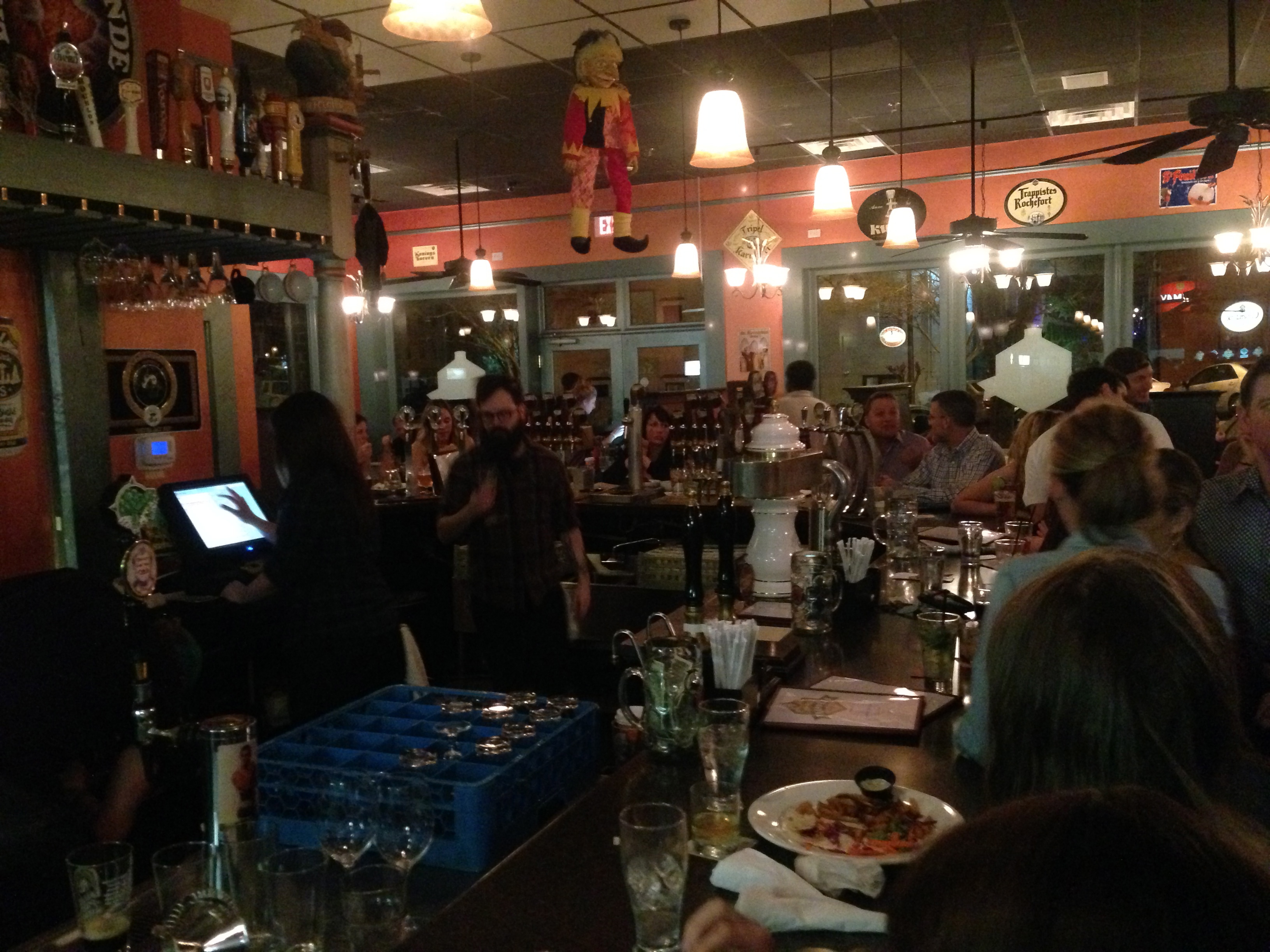 On this visit, we are so happy to be here that we forgot to take pictures of our beers when they are full. We both got the same thing, the Sam Adams doppelbock that was over 10% ABV. We didn’t get any food this time, so we have no pictures of what’s on the menu. By the way, if you are looking for something a little more intimate, the Highwire Lounge is owned by the same folks and is right next door.