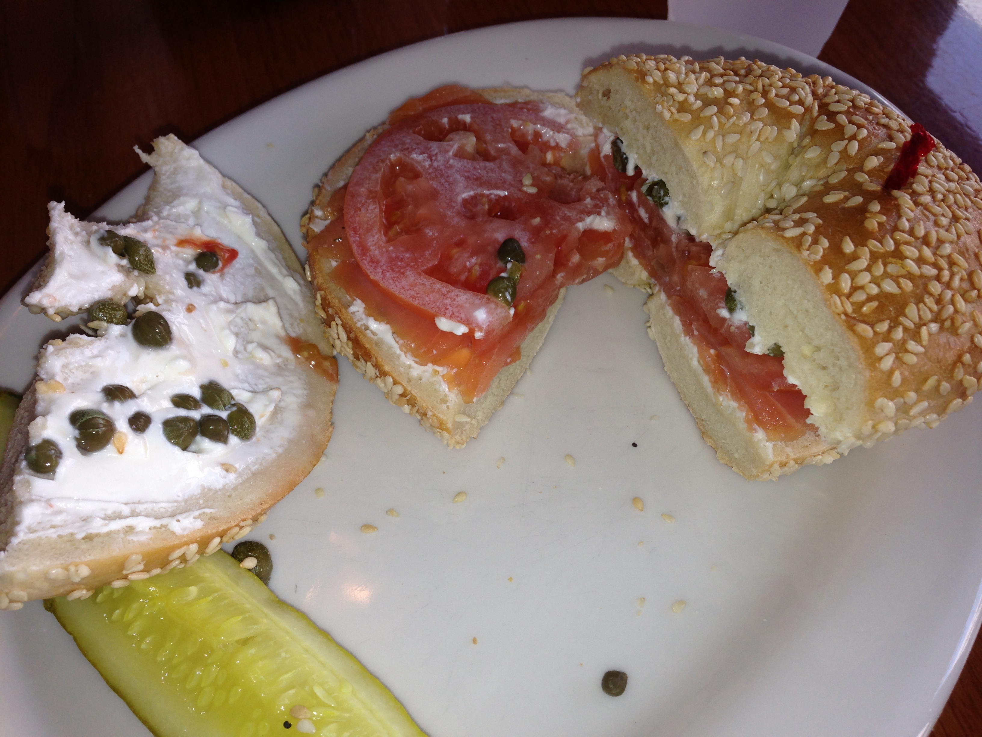 Traditionalists can go for the lox and bagel sandwich. It comes with cream cheese, tomato, and capers. Good stuff.