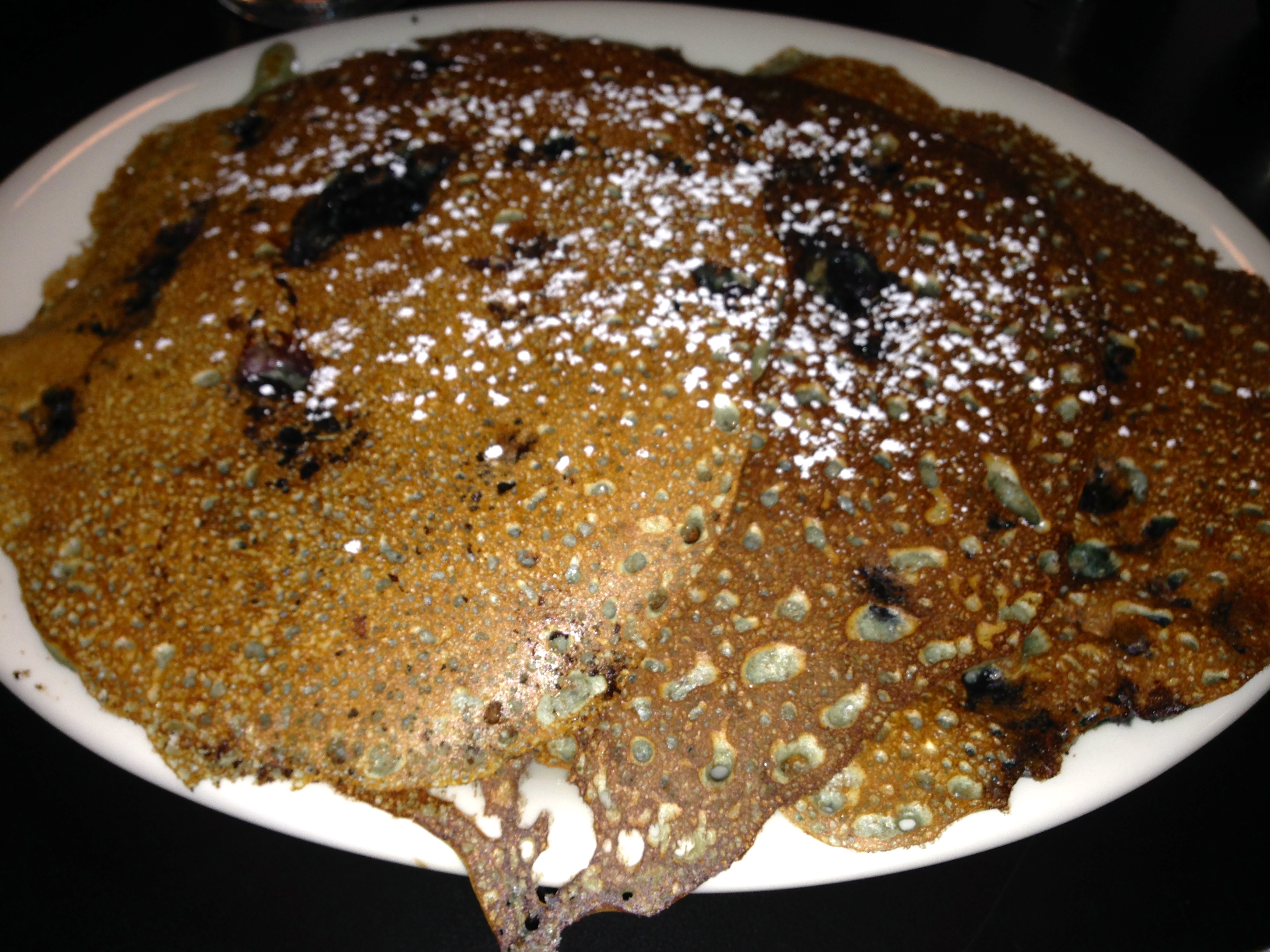 We order both specials. First up is the blueberry pancakes, a HUGE order of pancakes, bursting with blueberries. You could easily share this with a friend.