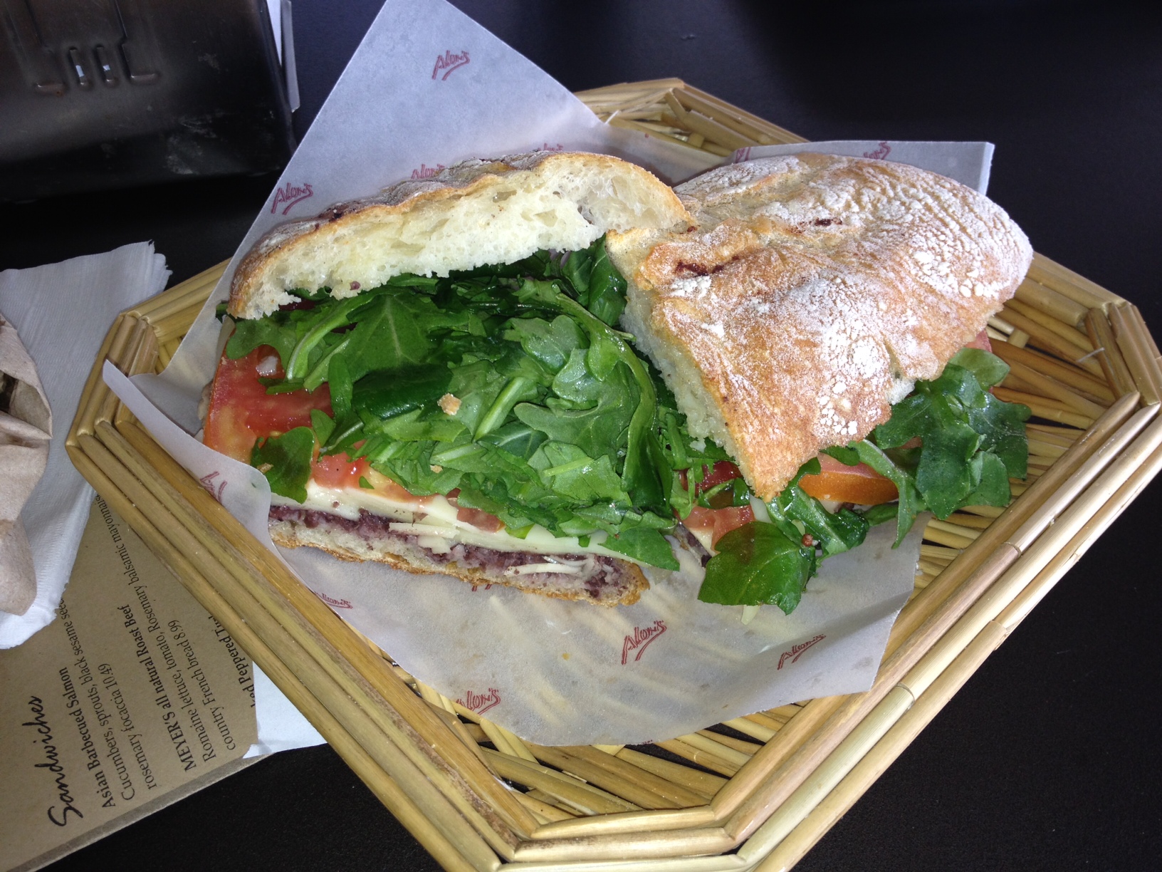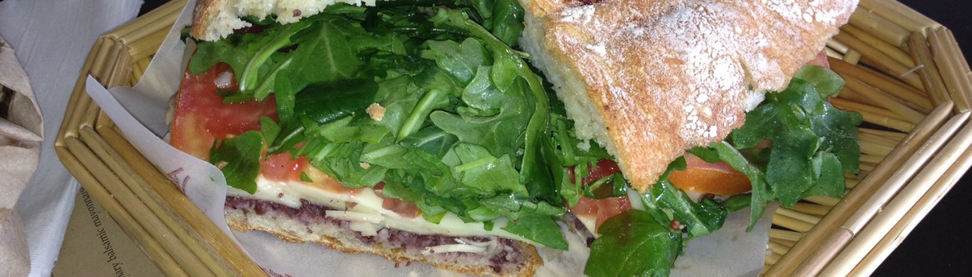 This place reminds me of Eatzi’s, which had locations in Buckhead and in this very building back in the late 90’s and left the city around 8 years ago. Alon’s is as intimidating as Eatzi’s was and I have no idea what to get. Finally, I find a menu which features sandwiches, salads, pizza and then I see the Grilled Panini. The Gruyere Cheese sounds perfect.