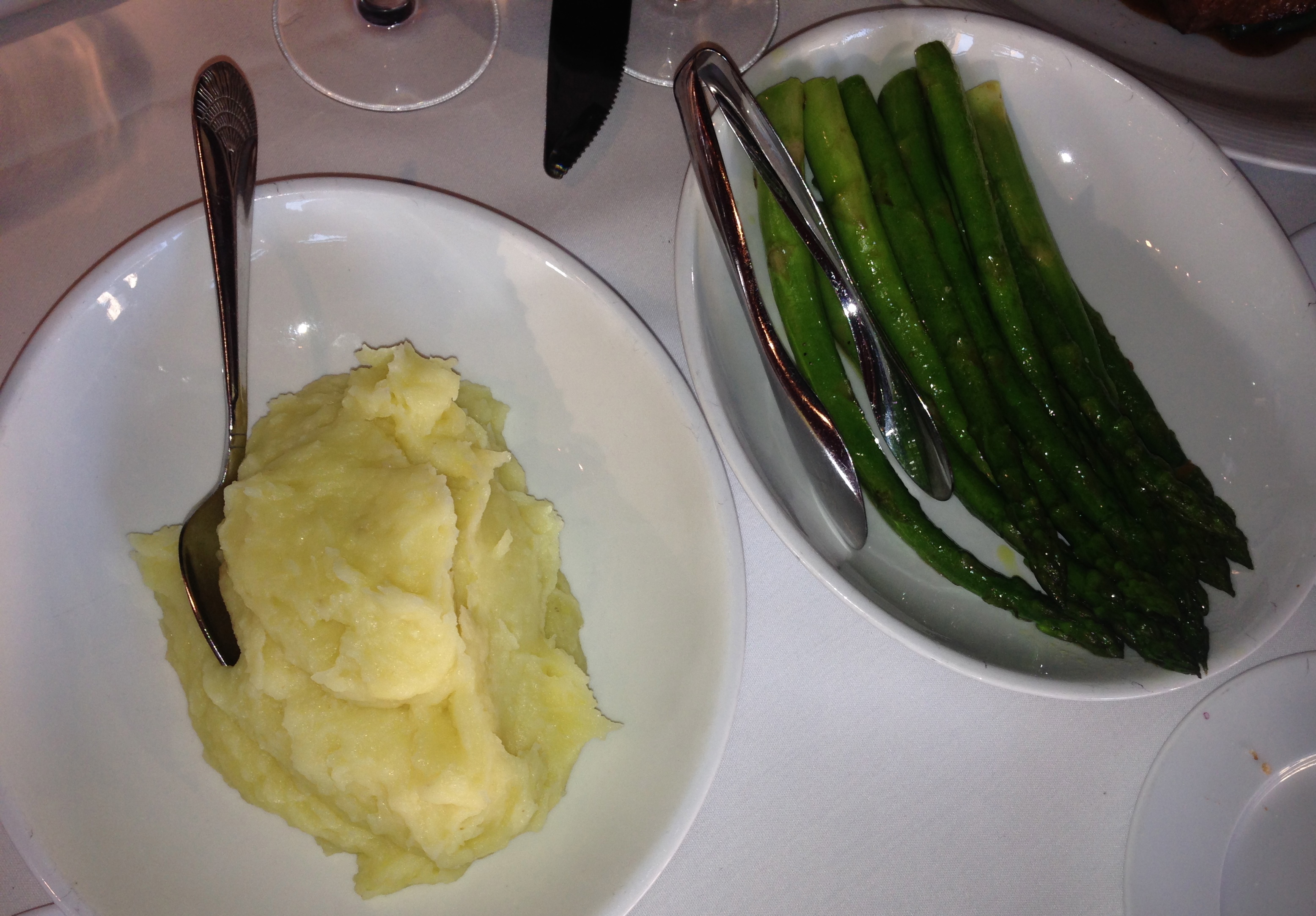 Just to make sure we have enough to eat, there is also asparagus and horseradish mashed potatoes on the table. Molto benne.