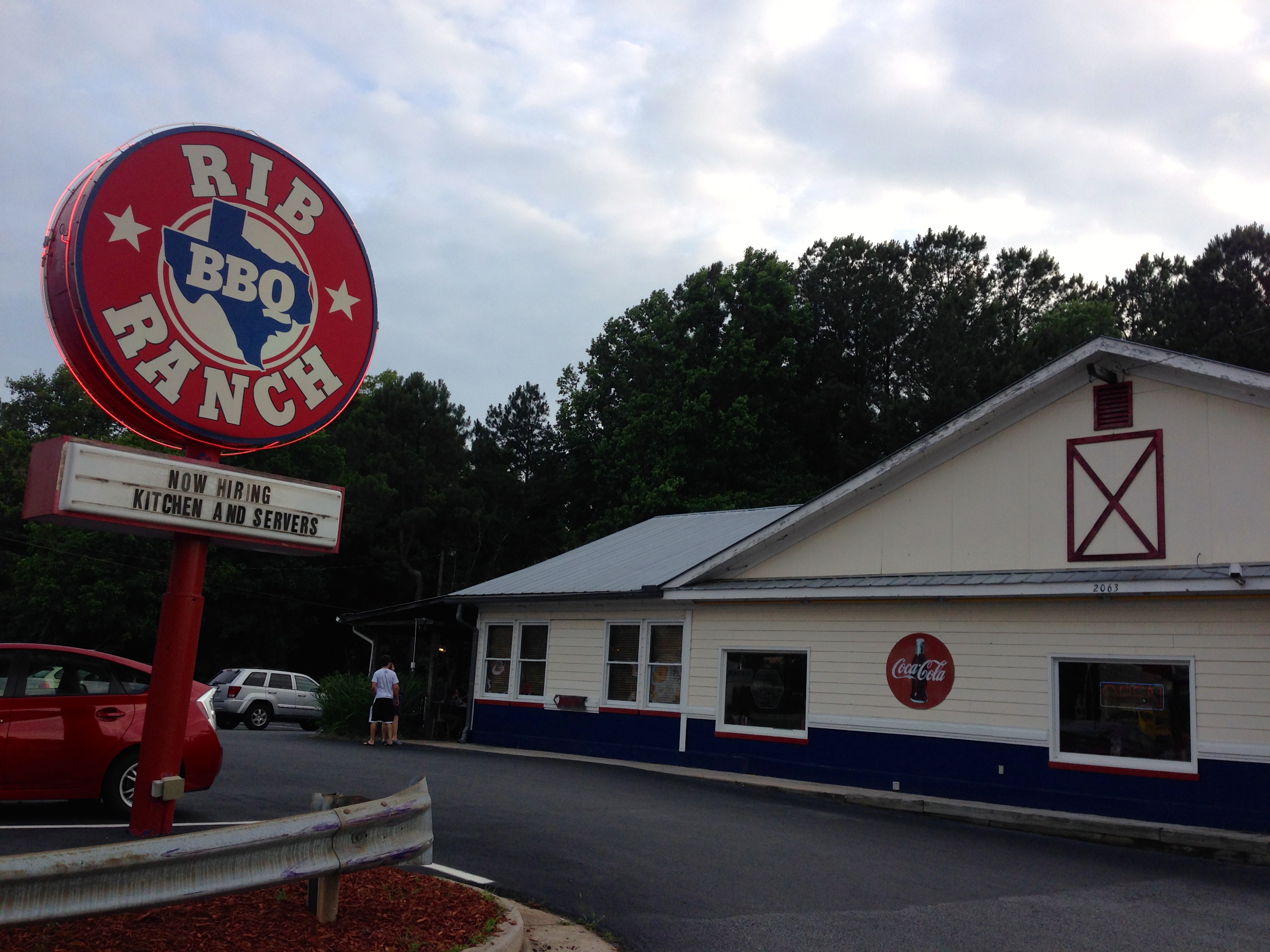 Date Night is tired and hungry, and we need a place that’s fun, quick, and easy. We head out Canton Highway to the Rib Ranch BBQ.