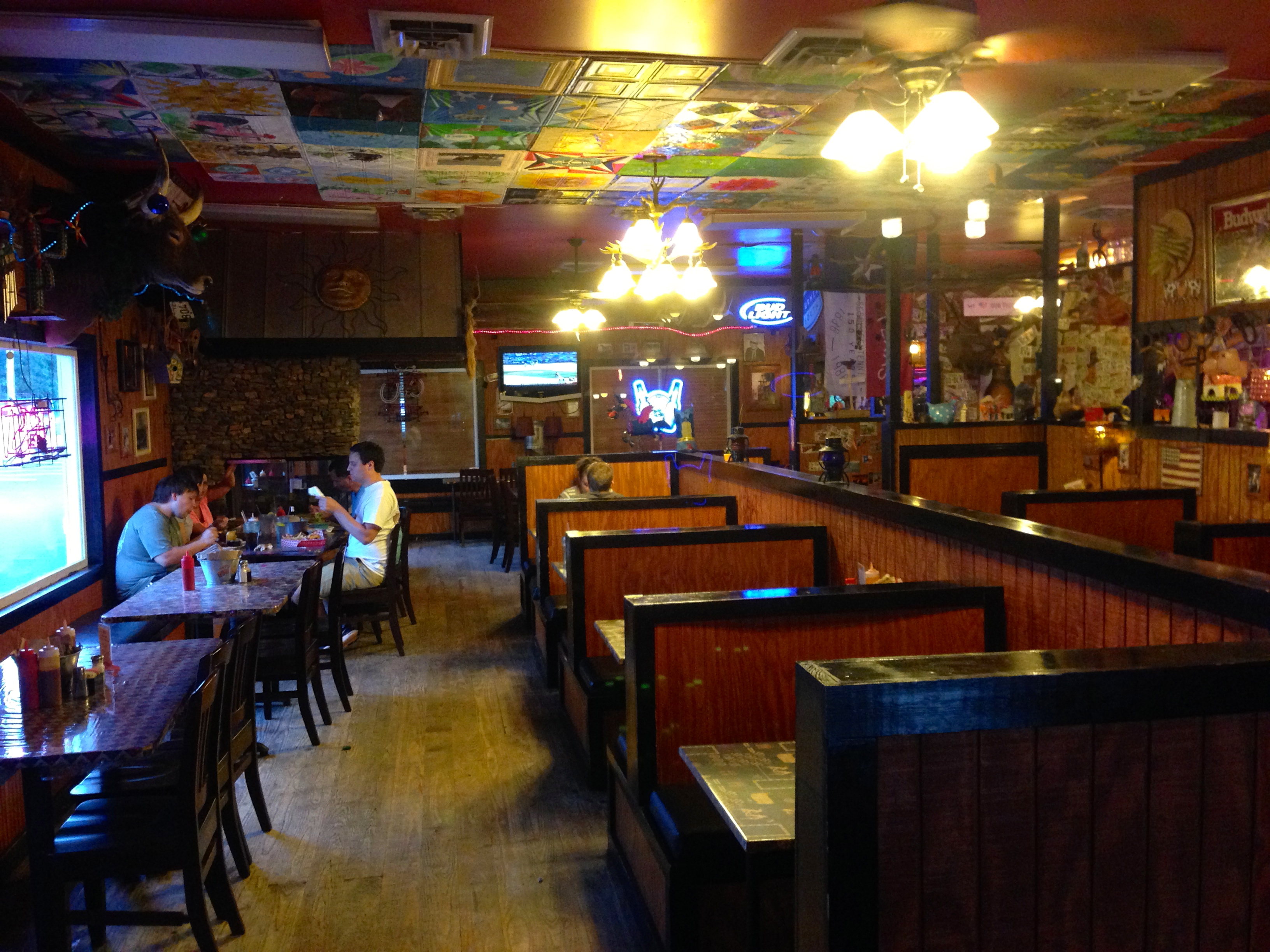 They have a good Texas theme going, with lots of fun things hanging on the wall. For those of you who like to look up, the ceiling is a work of art.