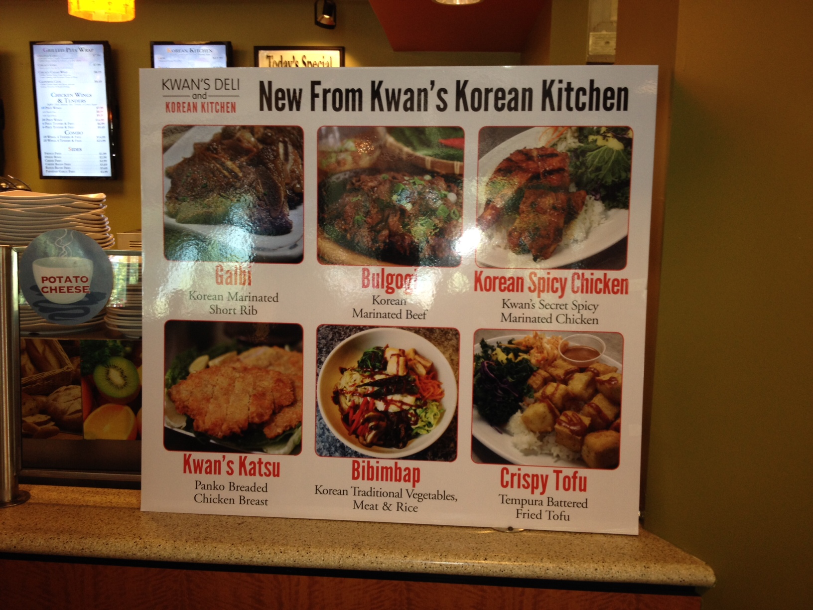 Along with standard deli fare, there is also a picture menu of the Korean choices. I have limited experience with Korean food but this reminds me of Sobban (Date Night, 2/28/14) which was an enjoyable foray into the unknown.