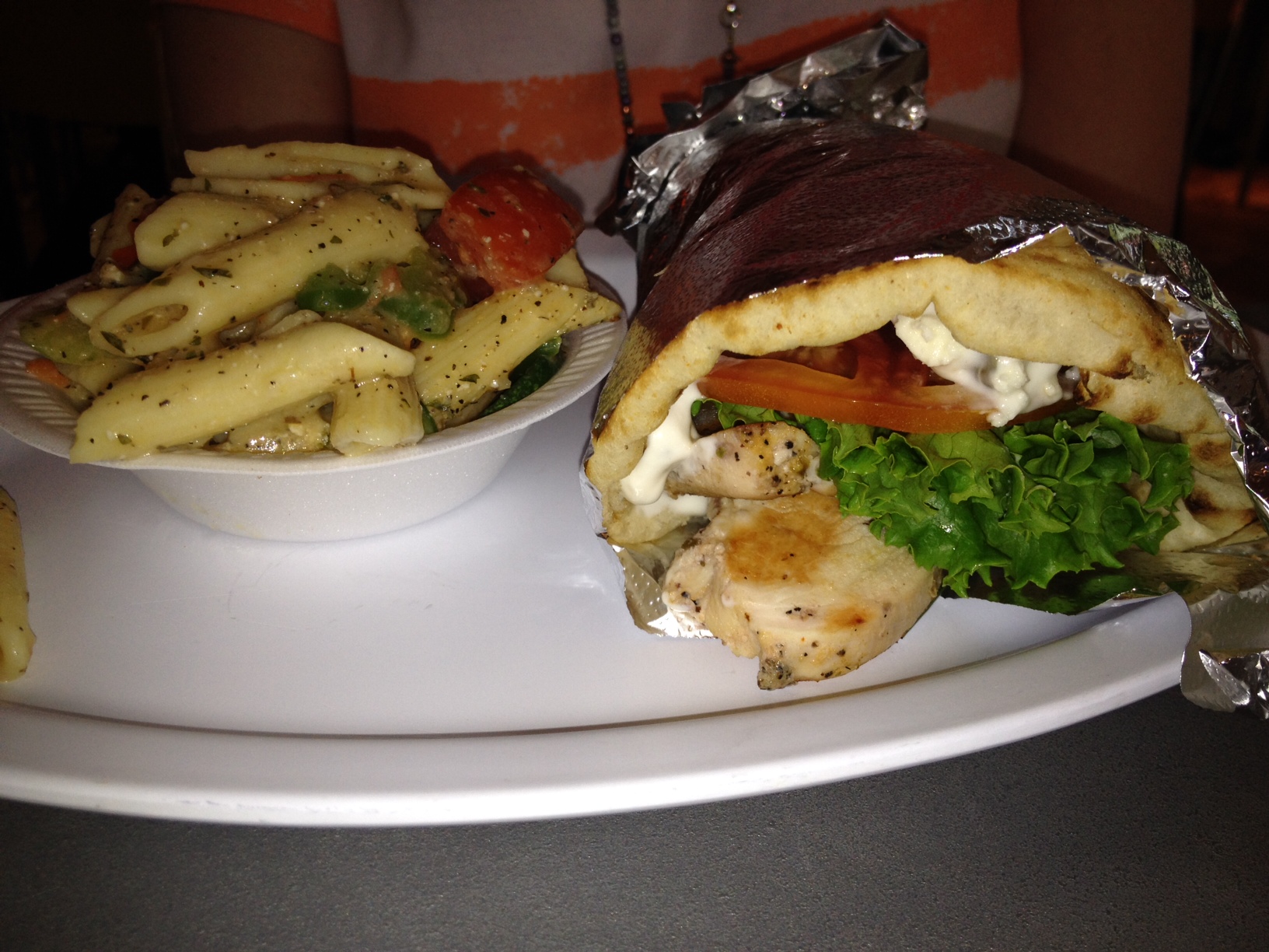 Stacy orders off of the more traditional deli menu. She goes with the chicken gyro which she says is her favorite. It’s a generous portion and she starts the meal by getting a to-go box and saving half for later. Obviously she has done this before.