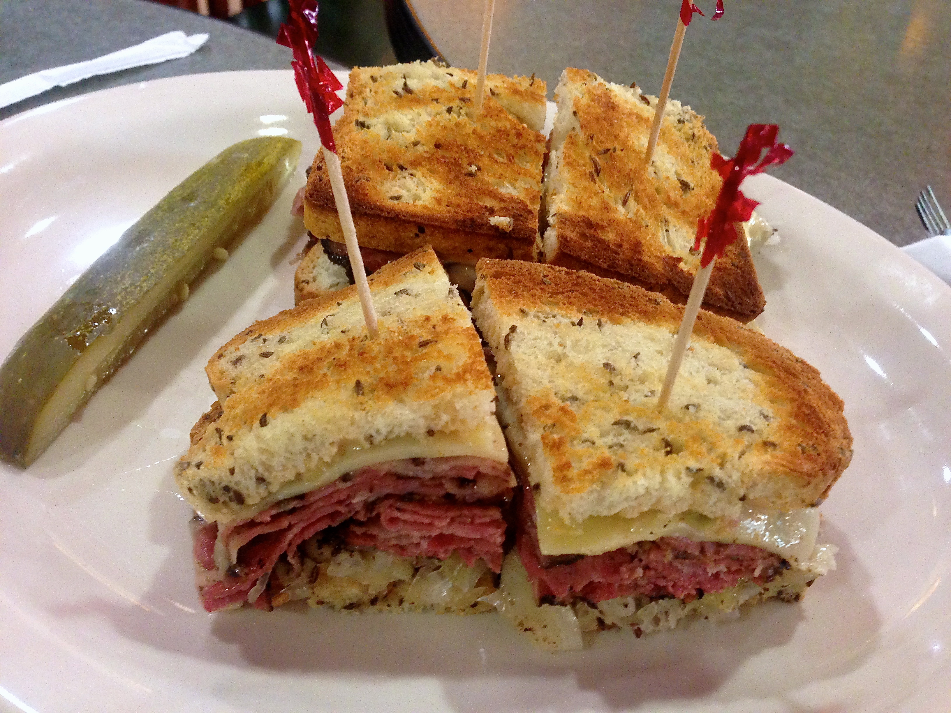 Goldberg’s has three kinds of Reubens. The California (seen here) has pastrami and the Brooklyn has corned beef.
