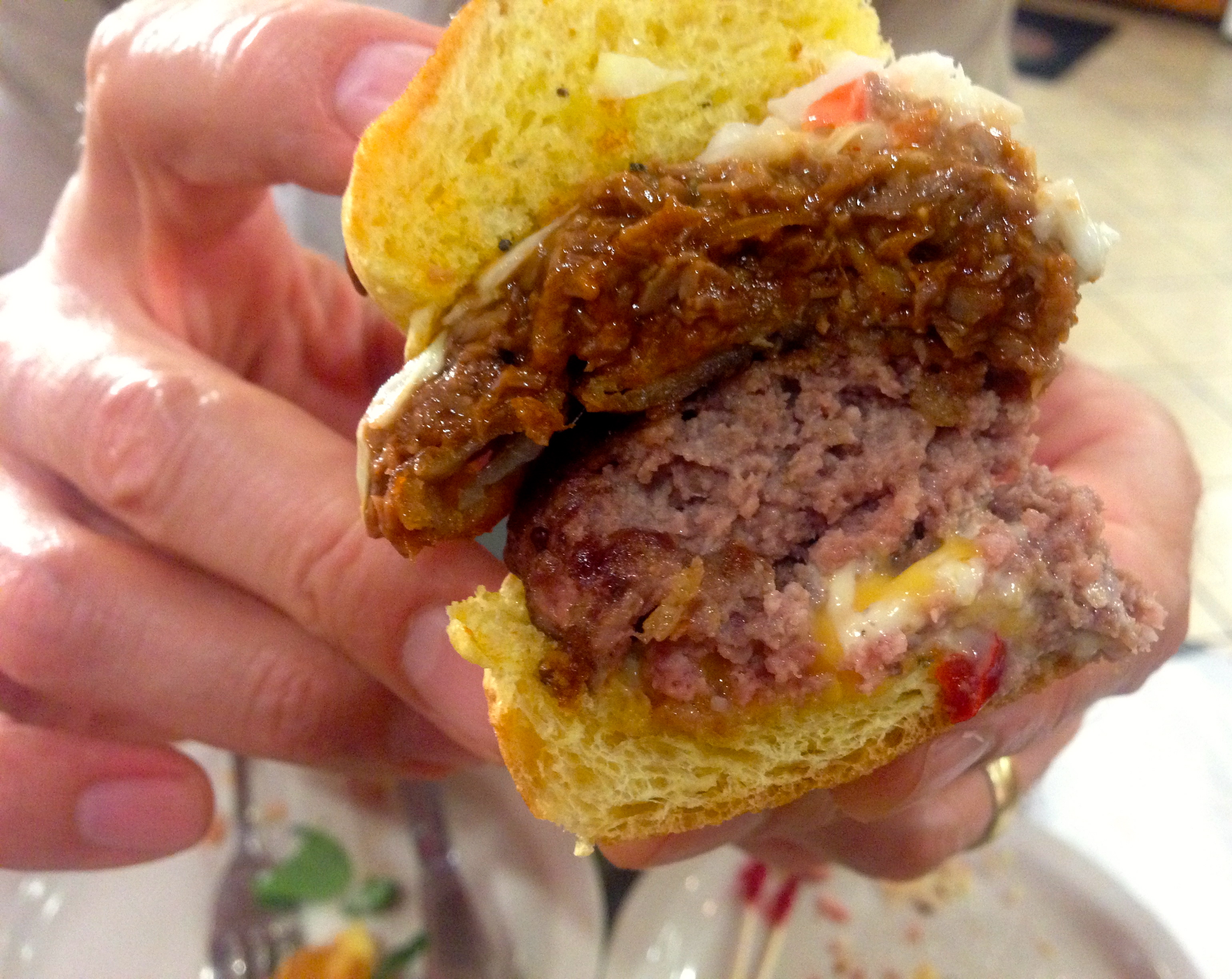 I really like the southern burger, which has brisket, pimiento cheese, cole slaw and barbecue sauce along with the burger under the bun.