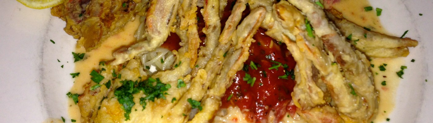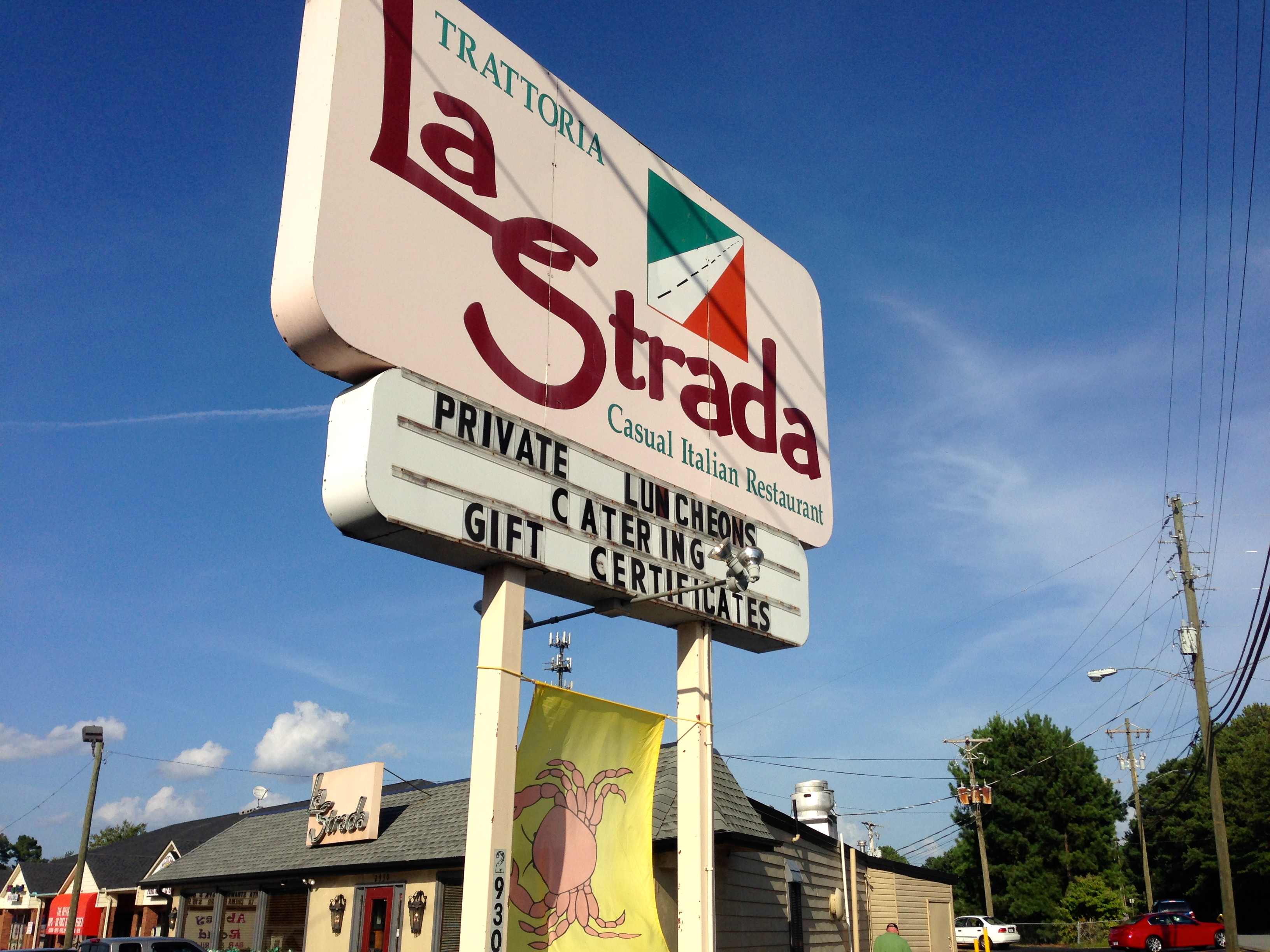 If La Strada has soft-shelled crabs as a special, they put up a flag under their sign so you know they are available. Lucky for us, the flag is flying tonight.