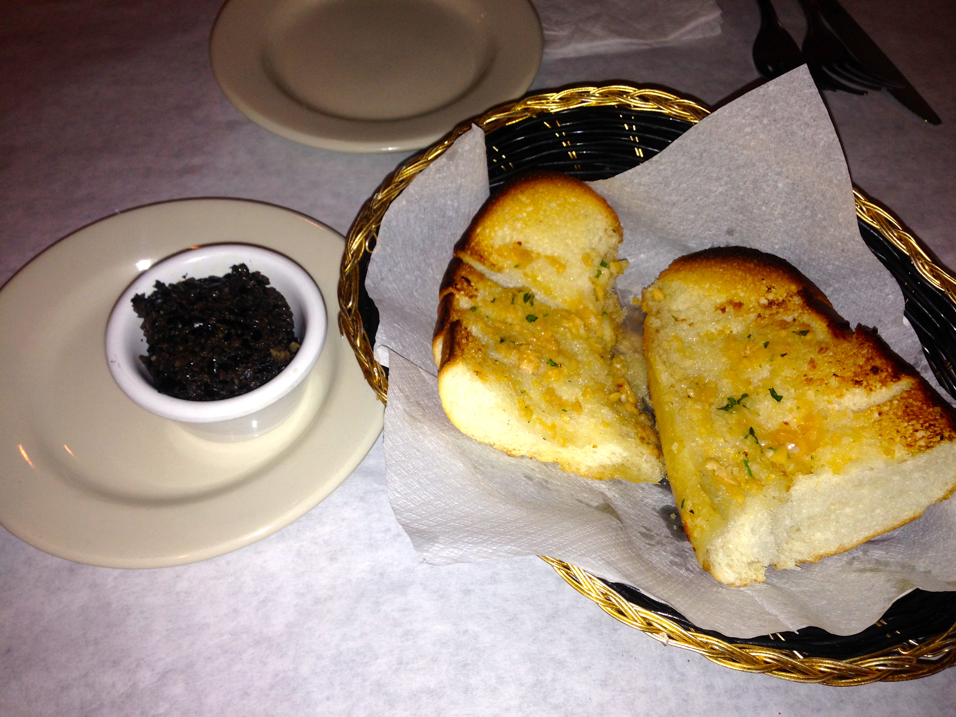 Meals at La Strada begin with bread and some really good tapenade and garlic bread. We paid $5 for this last week at the Foundation Social Eatery, but you can eat all you want for free here. Don’t fill up on it, because, as you will see, the portion sizes are “molto grande”.