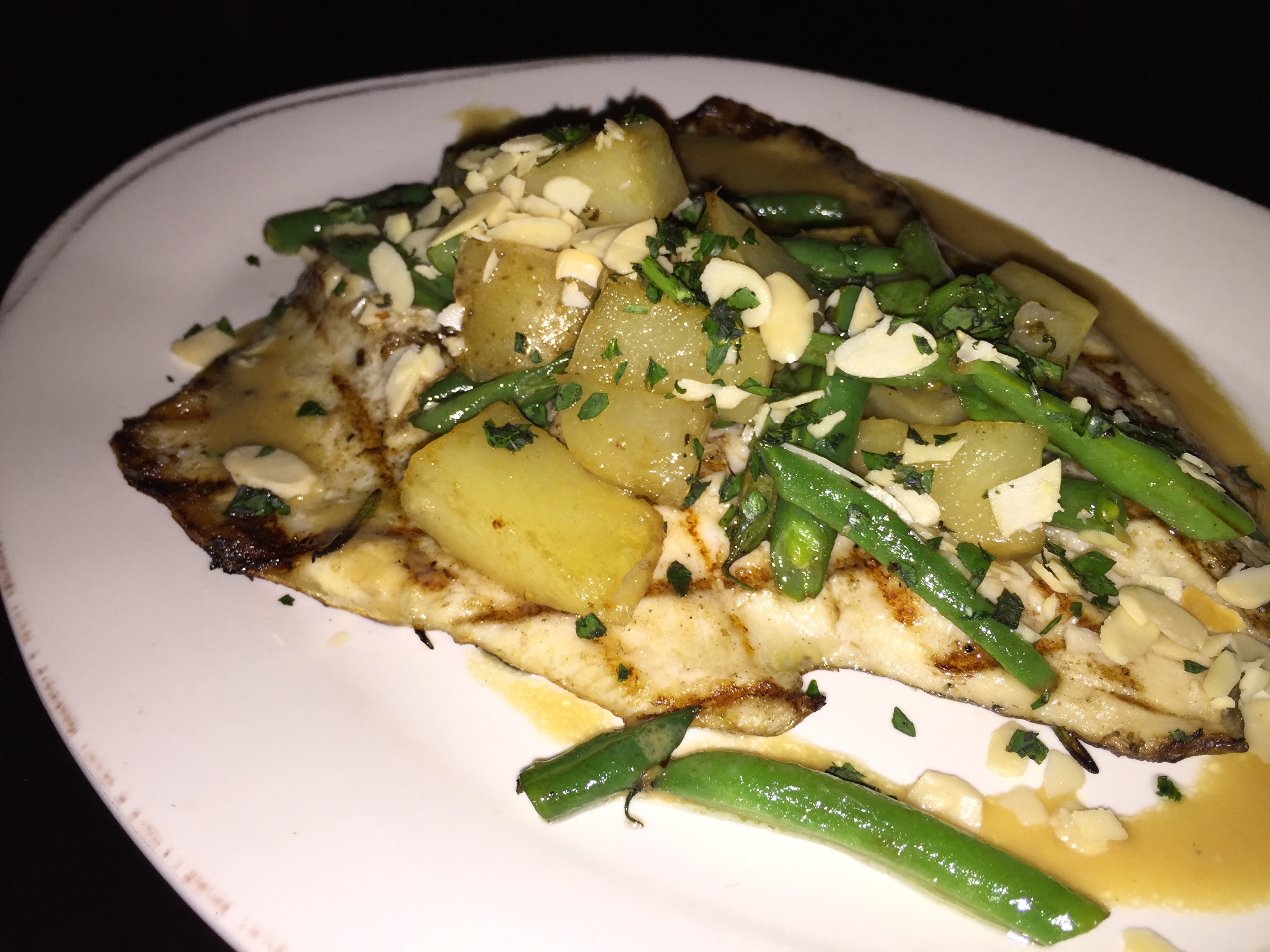 The trout almandine features moist, flaky fish with green beans, potatoes and almonds. I do not snag any of this, but I hear it is delicious.