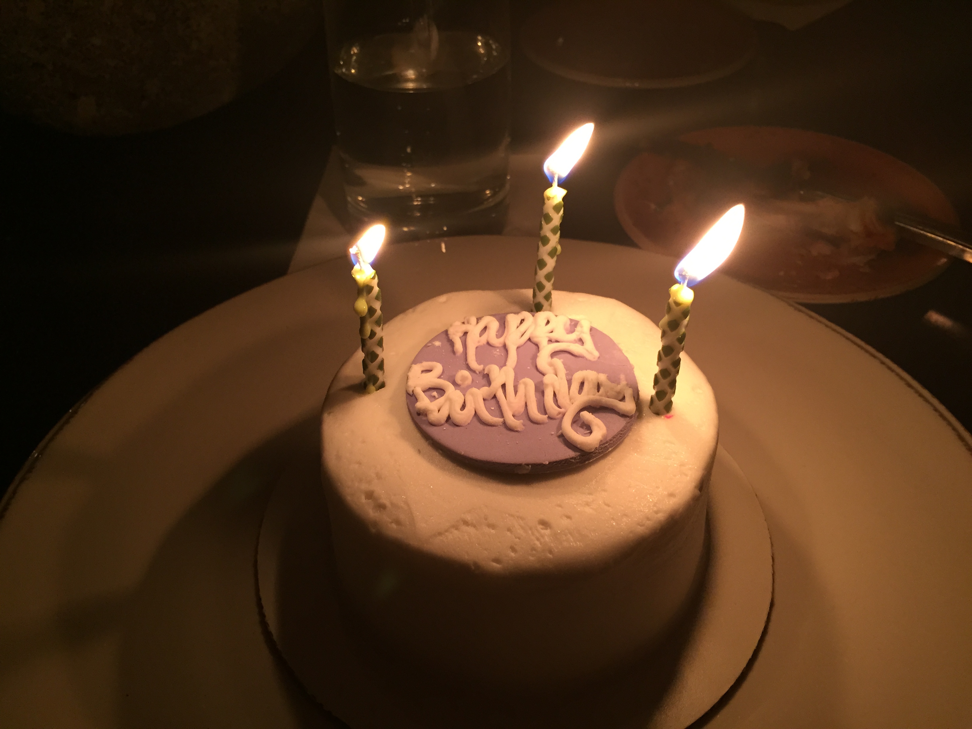 They bring us an adorable cake for dessert which gets split eight ways. What a fabulous time we have at The Bishop.